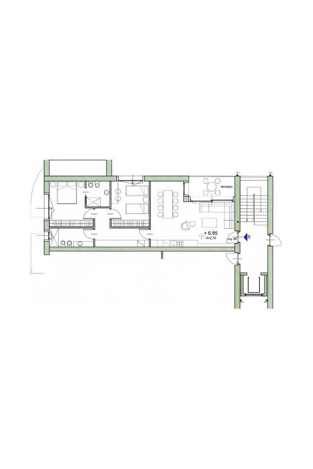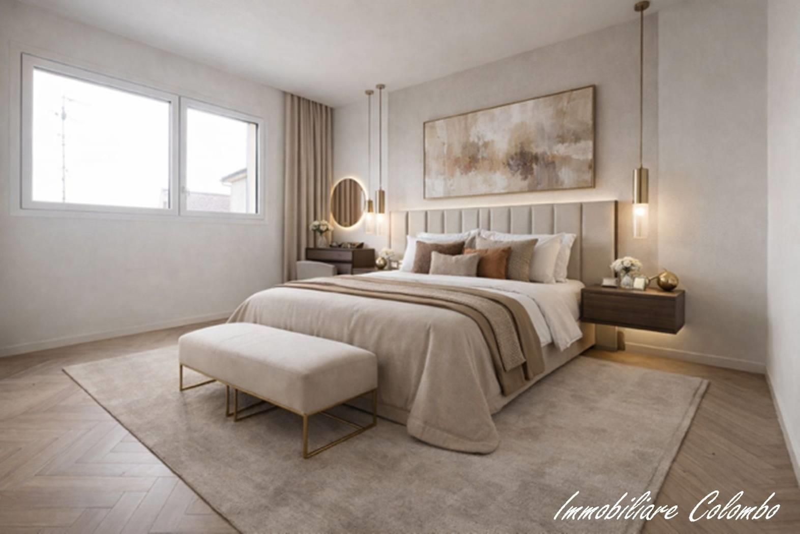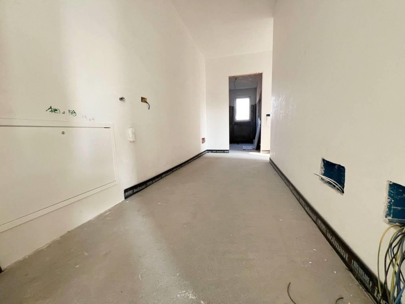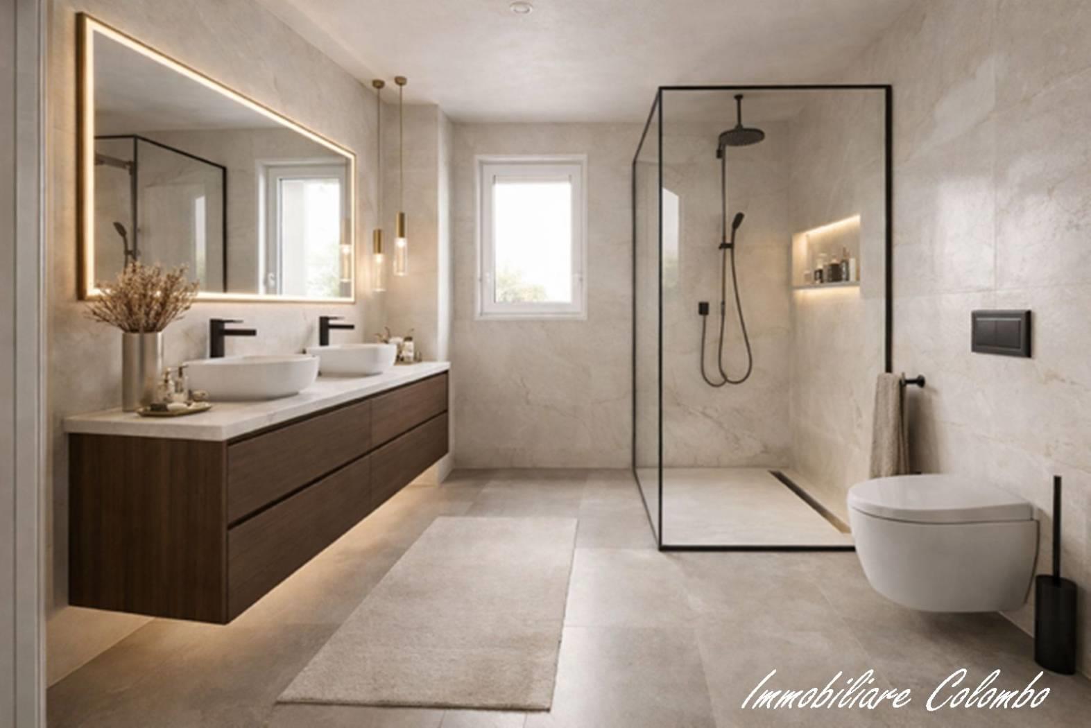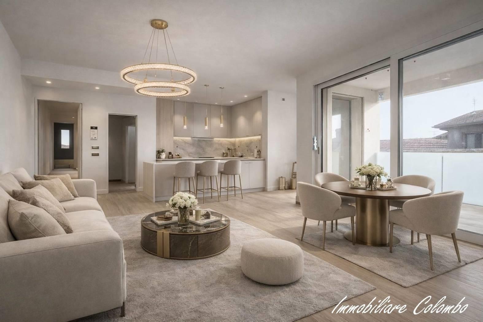 "Residenza Ambrosiana", appartamento mq. 99 ca. ingresso, soggiorno con cucina a vista, 2 camere, 2 bagni, terrazzo mq. 9 ca. cantina. Possibilità box doppio da € 28.000, 00. Finiture signorili. Facciata ad intonaco con isolamento termico a cappotto. Davanzali in alluminio. Serramenti in alluminio con doppi vetri e oscuramento garantito da veneziane in alluminio con motorizzazione elettrica. Porta primo ingresso blindata. Porte interne in legno a battente. Pavimentazione in gres porcellanato nella zona giorno e parquet essenza Rovere a listoni nella zona notte. Sanitari sospesi Duravit con miscelatori Hansgrohe modello Focus. Impianto centralizzato bivalente con caldaia ecologica a condensazione e pompa di calore aria/acqua per la produzione di acqua calda e riscaldamento. Impianto di riscaldamento con pannelli a pavimento. Contabilizzazione consumi (riscaldamento, acqua calda e fredda). Impianto elettrico Vimar serie Idea. Predisposizione aria condizionata. Predisposizione impianto allarme volumetrico e perimetrale. Impianto fotovoltaico. Videocitofono. Ascensore.