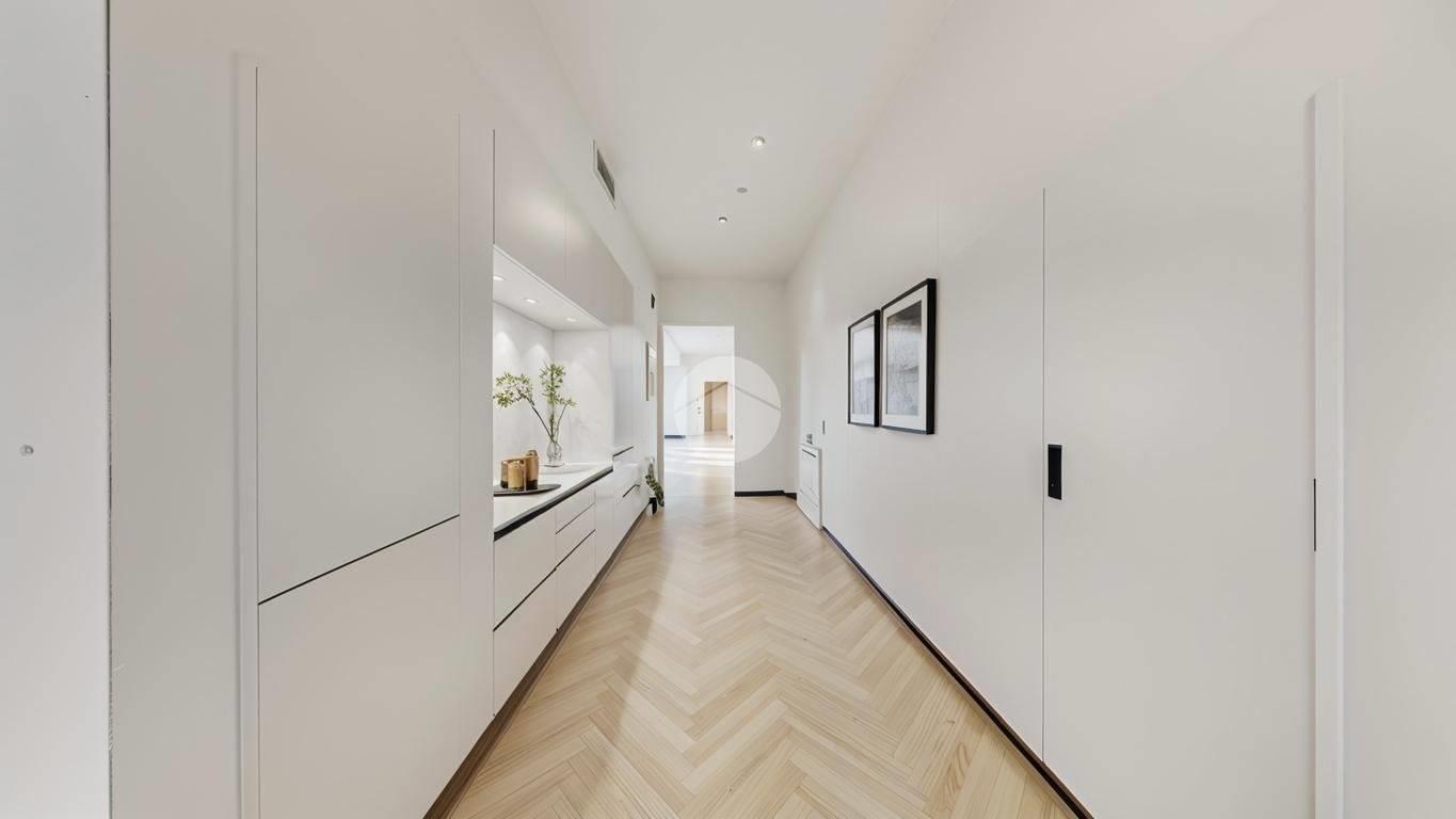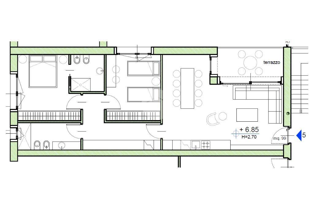 L'appartamento dispone di riscaldamento a pavimento con termostato separato per ogni locale e scalda-salviette nei bagni, predisposizione aria condizionata e impianto di allarme. Infissi doppio vetro in alluminio con tapparelle elettriche. Predisposizione fibra ottica. Impianto fotovoltaici per parti comuni del condominio.
