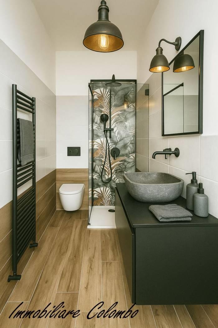 In piccolo contesto di cinque famiglie completamente ristrutturato, al primo piano, 3 locali mq. 87 ca. ingresso, soggiorno con cucina a vista, 2 camere, bagno, balcone. Box singolo € 20.000,00. Riscaldamento autonomo. Facciata ad intonaco giallo e mattoni a vista. Serramenti in PVC color bianco con oscuramento garantito da persiane scorrevoli. Porta primo ingresso blindata. Porte interne in legno a battente. Pavimentazione in gres porcellanato effetto parquet nella zona giorno e nella zona notte. Sanitari sospesi con miscelatori. Esposizione Nord - Est. (I render degli interni sono indicativi).