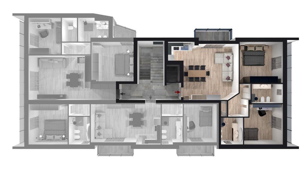- Trilocale n 3: soggiorno, cucina a vista, balcone, camera con bagno privato, seconda camera e secondo bagno – cantina - € 230.000,00;