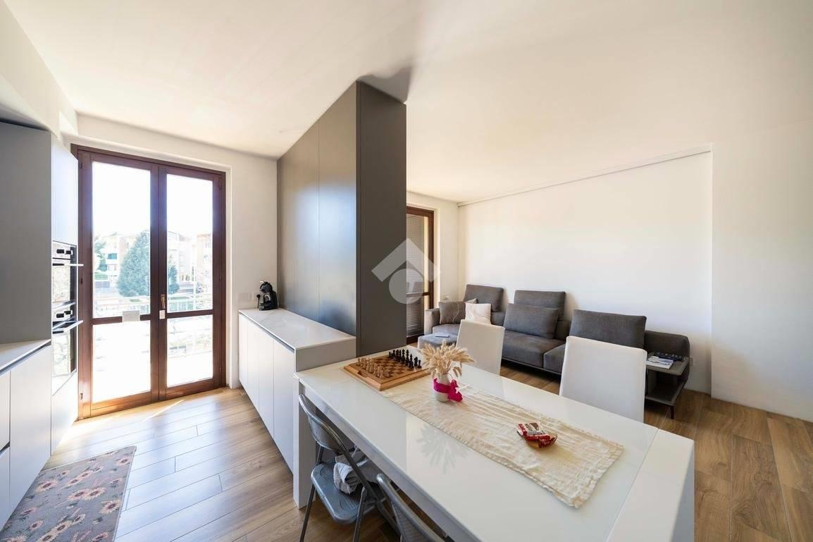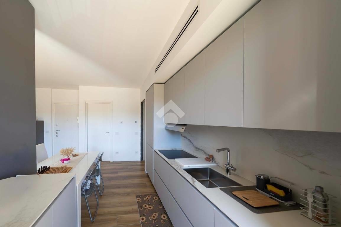 Situato al secondo piano con ascensore, l’immobile si apre su un’ampia e luminosa zona living con cucina a vista e accesso diretto al terrazzino.