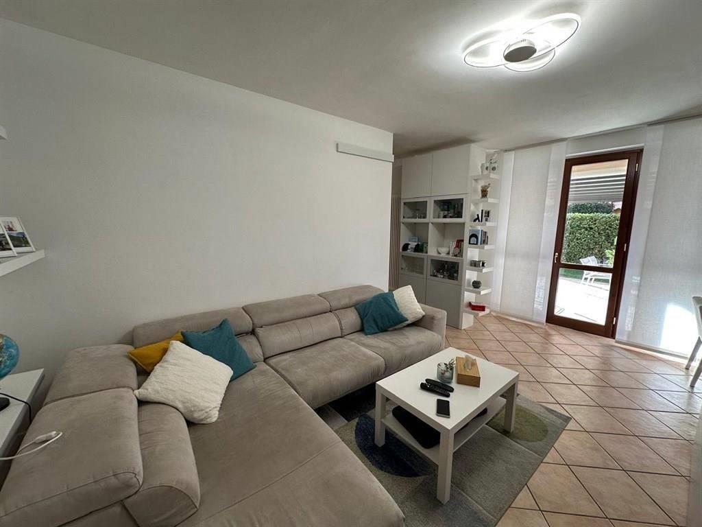 Una parte di esso è godibile anche come zona pranzo in quanto sono presenti un patio coperto con pergola motorizzata da cui si accede dal soggiorno ed una parte ed un patio accessibile dalla cucina con tenda automatizzata.
