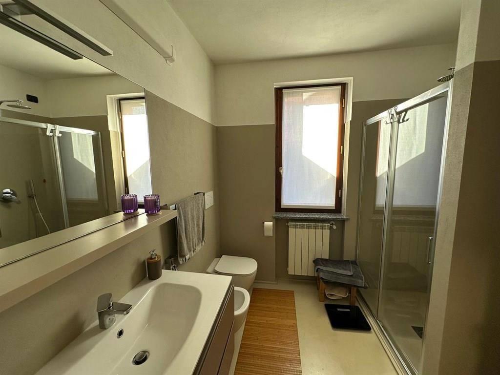 L' ampio bagno del piano interrato è stato oggetto di recente ristrutturazione, è finestrato ed è dotato di box doccia e angolo lavanderia.
