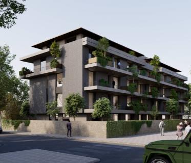 L'appartamento è posto al primo piano ed è così composto: l'ingresso si apre sulla zona giorno con cucina a vista, completa di portafinestra che dà l'accesso al comodo balcone, attraverso il disimpegno si accede alla camera grande e ai due bagni di cui uno finestrato entrambi con doccia, camera matrimoniale di generose dimensioni . Completa la soluzione cantina e box singolo ( € 15.000,00 prezzo a parte) al piano interrato.