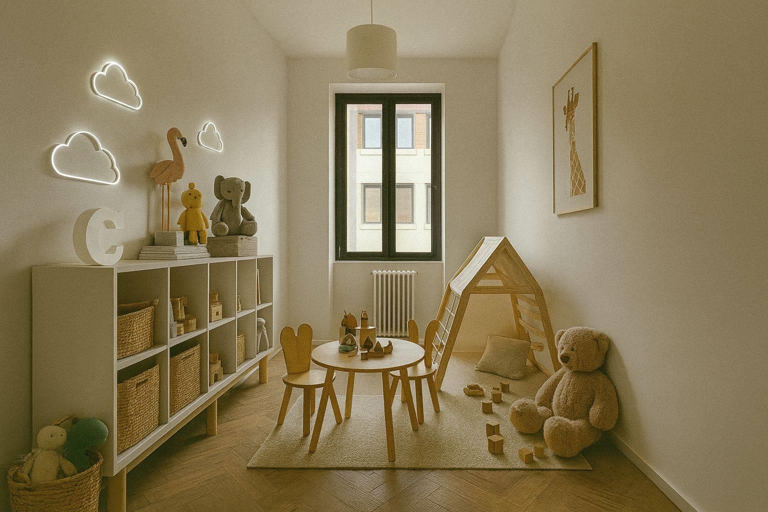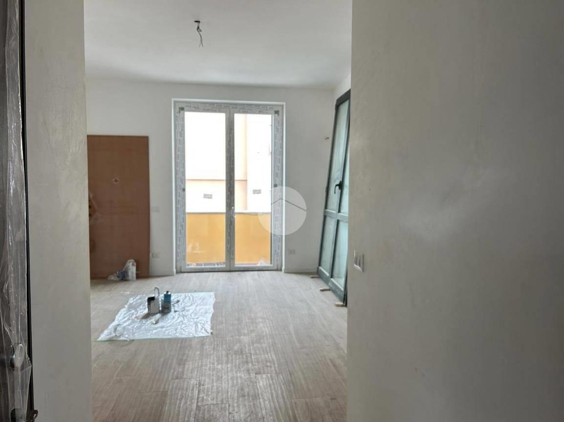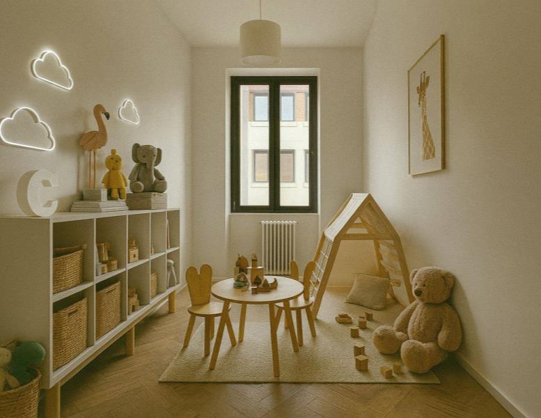L’ingresso si apre su un luminoso soggiorno con cucina a vista, ideale per la vita quotidiana e per ricevere ospiti in un ambiente moderno e accogliente.