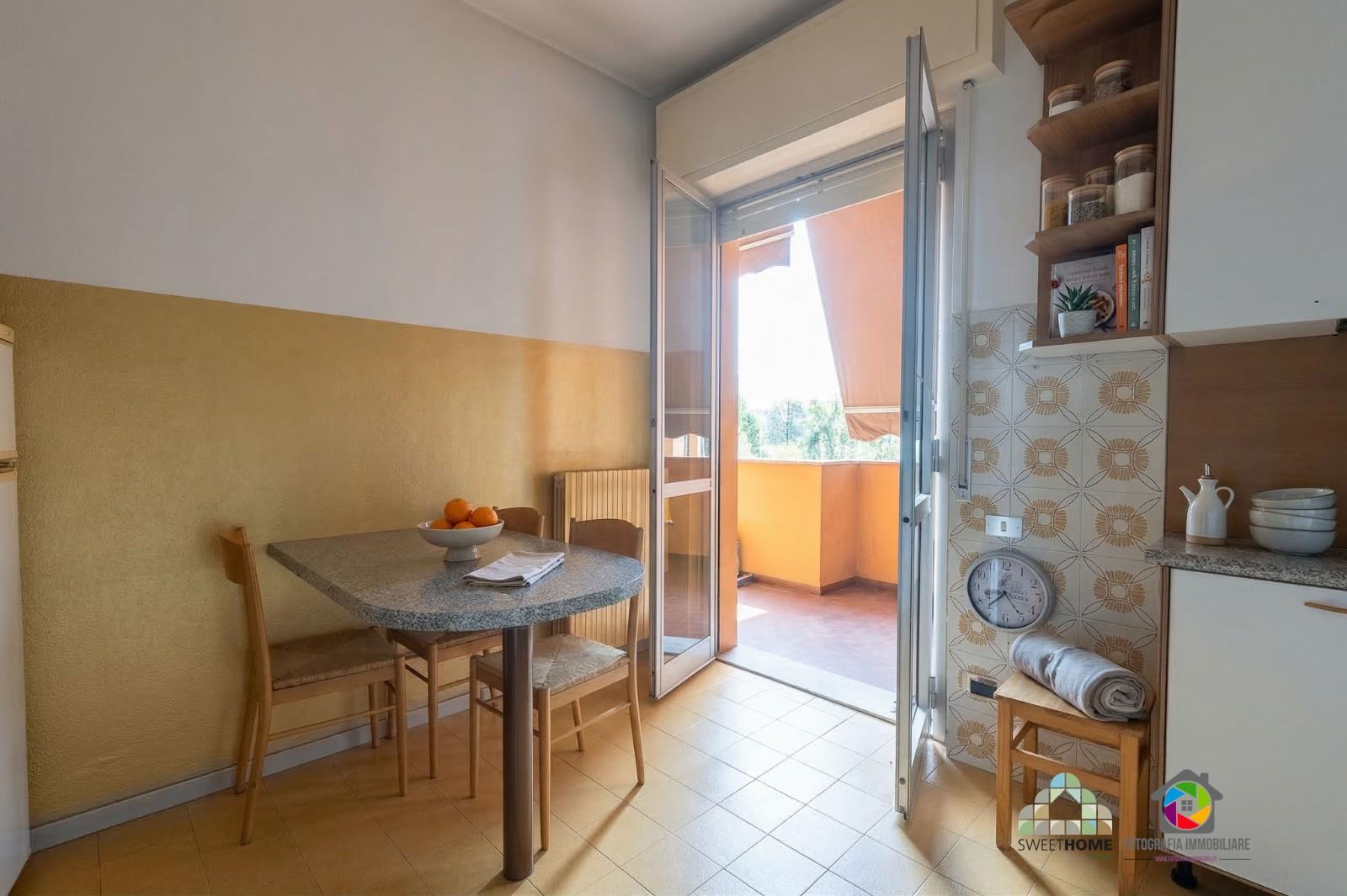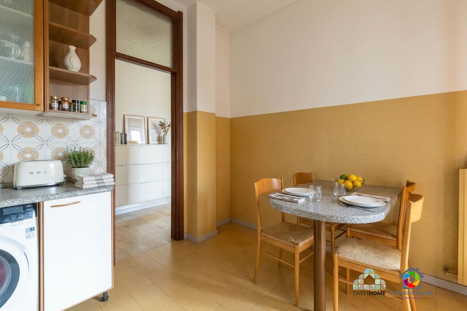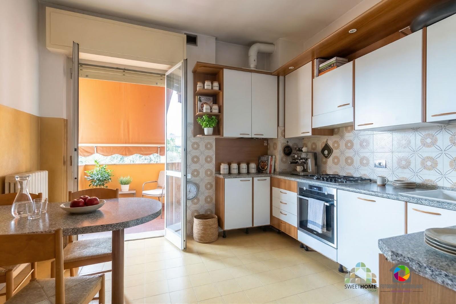 L’appartamento accoglie con un ampio ingresso che conduce alla cucina abitabile e al grande soggiorno con zona pranzo, ambienti luminosi e perfetti per la vita quotidiana, entrambi con accesso diretto al balcone.