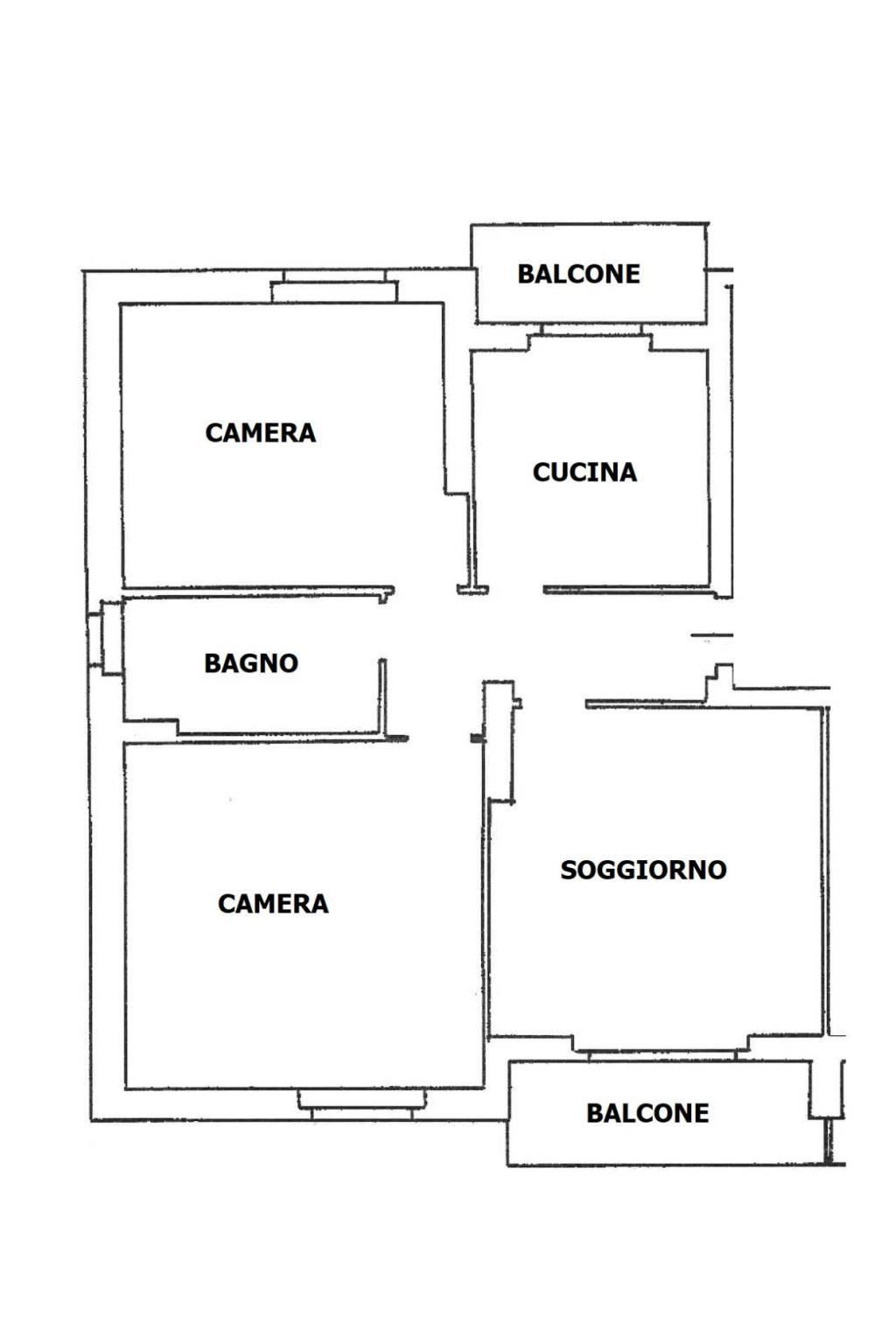 L’immobile‚ di circa 80 mq‚ è composto da: soggiorno‚ cucina abitabile‚ due camere da letto‚ servizio e due balconi rispettivamente di 5 mq e 3 mq