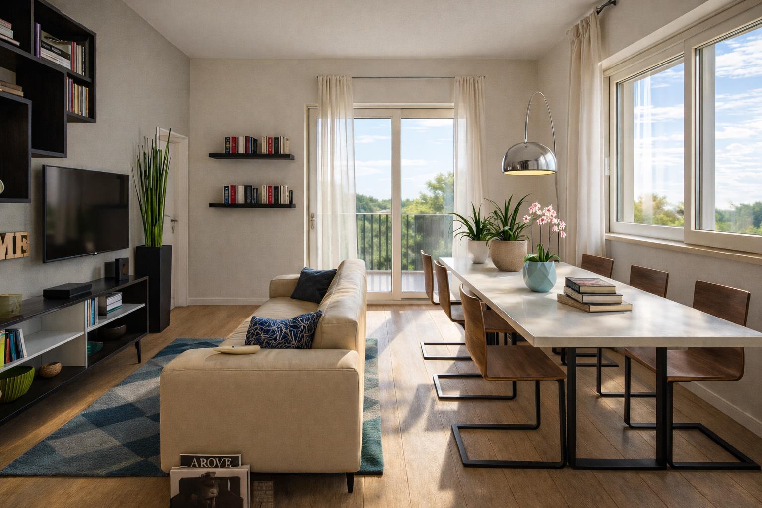 luminosa zona giorno con accesso a balcone di circa 20 mq, ideale per momenti di relax all’aperto