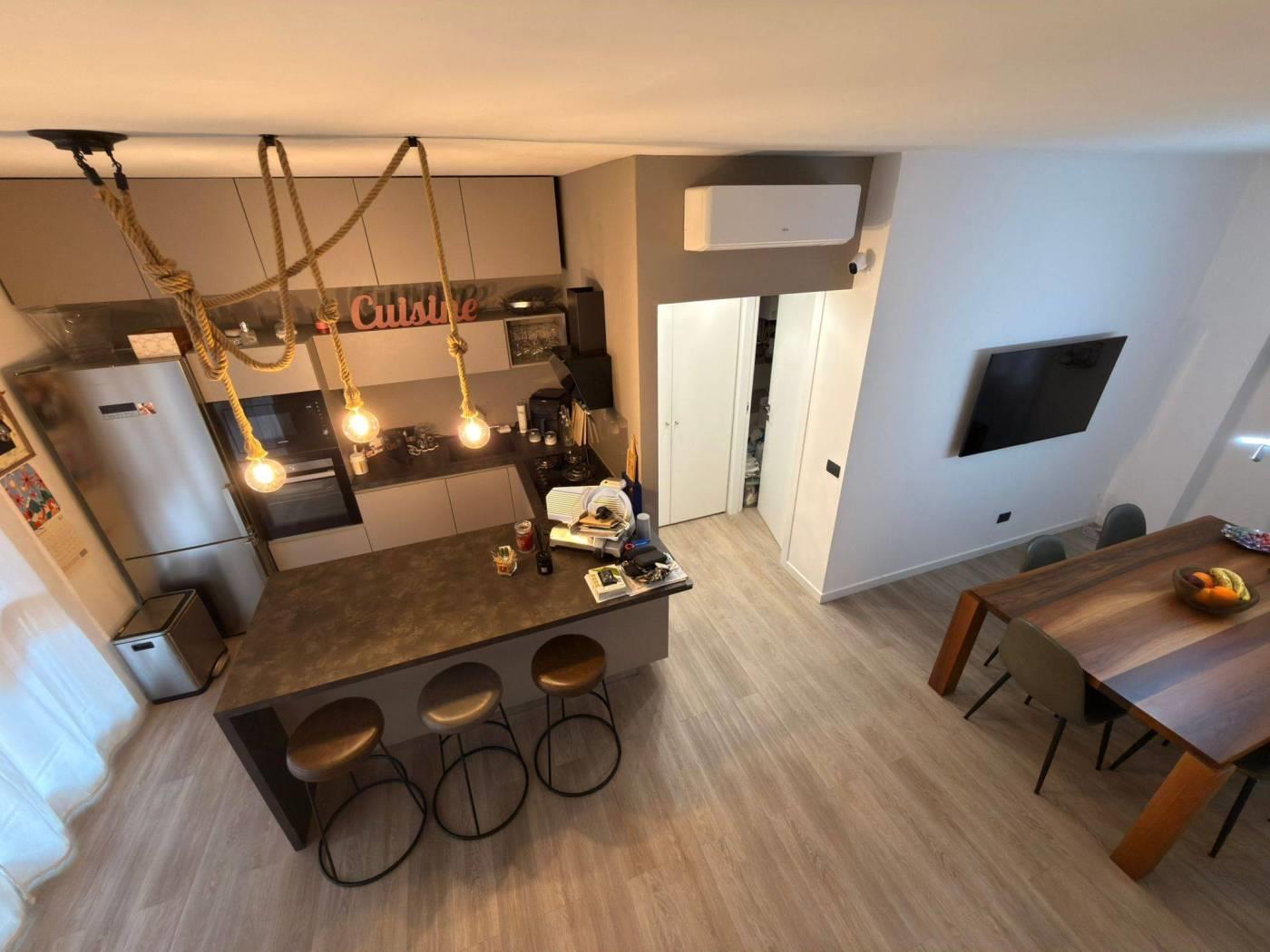 A Seveso, in zona comoda con la stazione Ferrovie Nord Milano, proponiamo in contesto residenziale del 2010 splendido appartamento completamente ristrutturato nel 2020, situato al primo piano e disposto su due livelli. L’immobile si sviluppa al primo piano con una luminosa zona giorno composta da soggiorno con area TV, cucina a vista con zona pranzo e bagno finestrato. Una comoda scala interna conduce al piano mansardato abitabile, caratterizzato da eleganti travi in legno bianche a vista, dove troviamo due camere da letto e un secondo bagno finestrato con doccia. Completa la proprietà un grazioso terrazzino, ideale per momenti di relax.