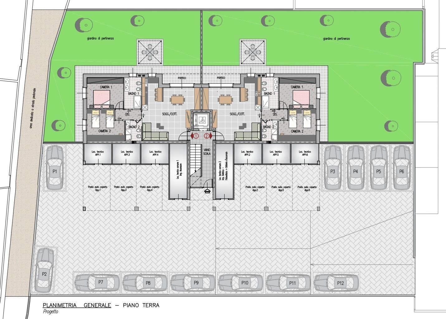 con annessi spazi esterni a giardino, parcheggi esterni, posti auto coperti