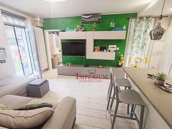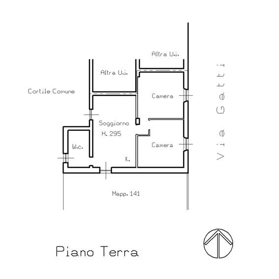 L'appartamento con ingresso unico ed indipendente direttamente dalla strada è così composto: soggiorno con cucina a vista e accesso al giardino, bagno finestrato e dotato di comoda doccia, disimpegno, ampia camera matrimoniale e cameretta.