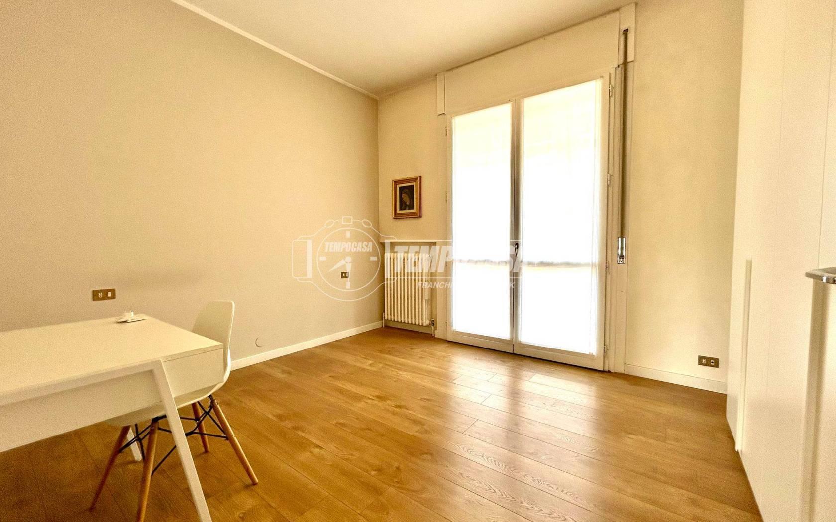L’appartamento si apre su un ingresso diretto nel soggiorno, ampio e luminoso, con cucina separata dotata di accesso al balcone. La zona notte si compone di due camere da letto spaziose, e due bagni entrambi finestrati, elemento sempre più raro e molto richiesto per funzionalità e comfort quotidiano.