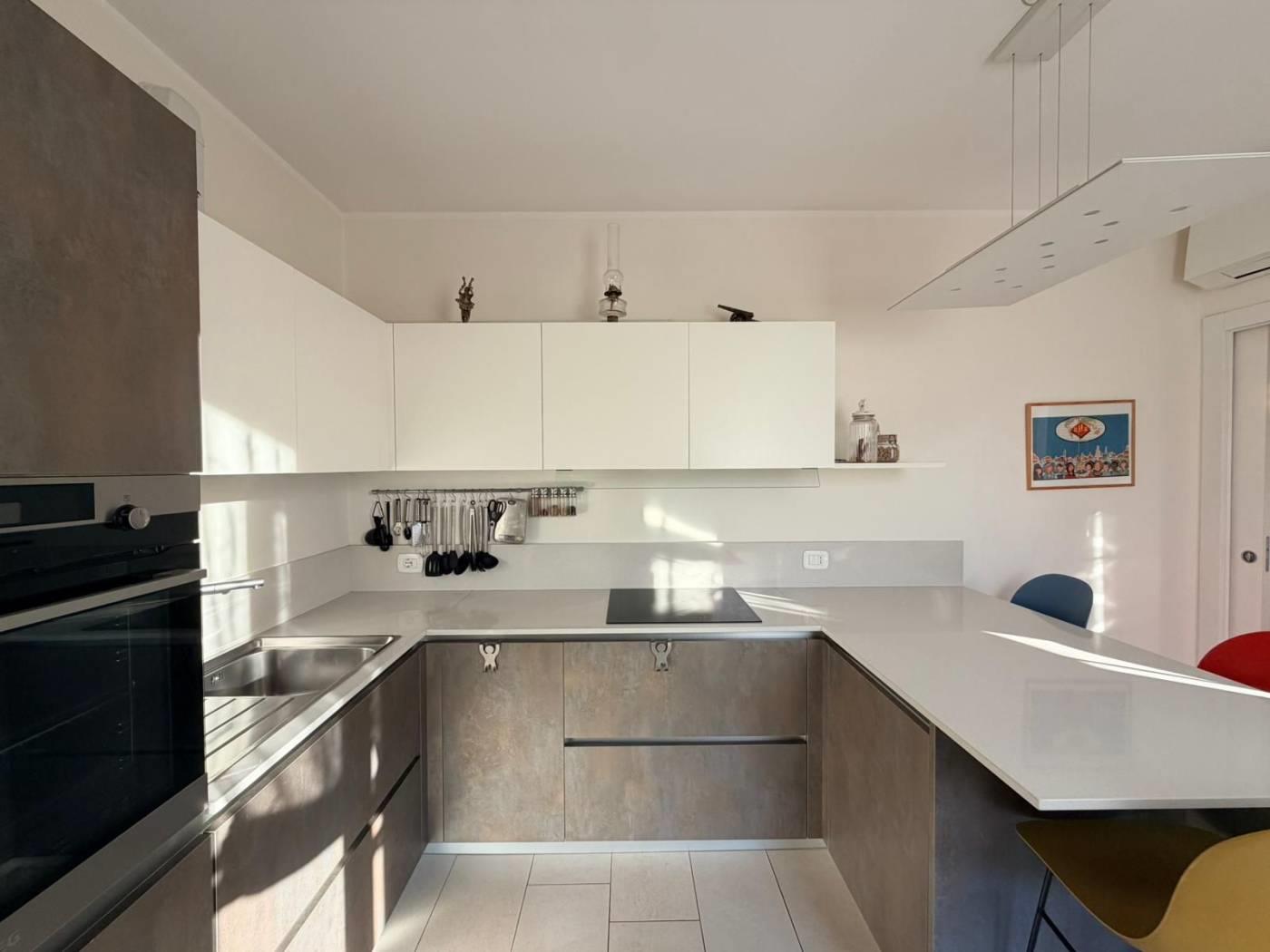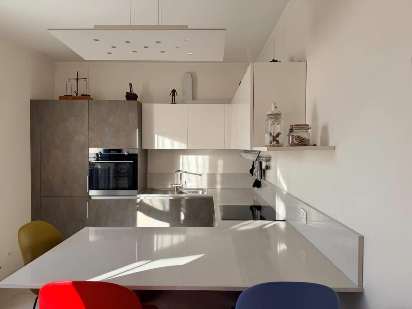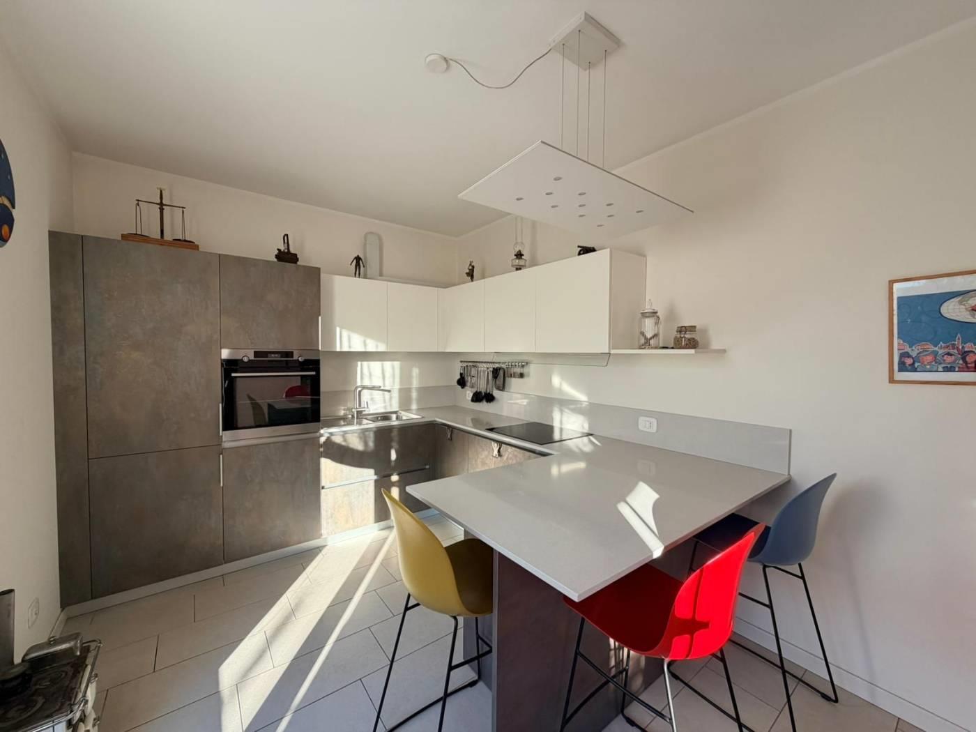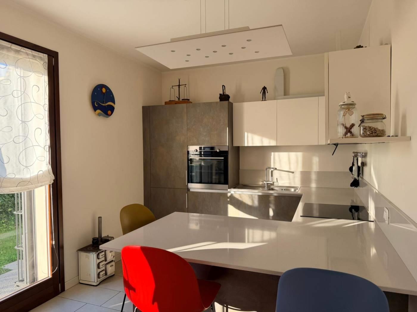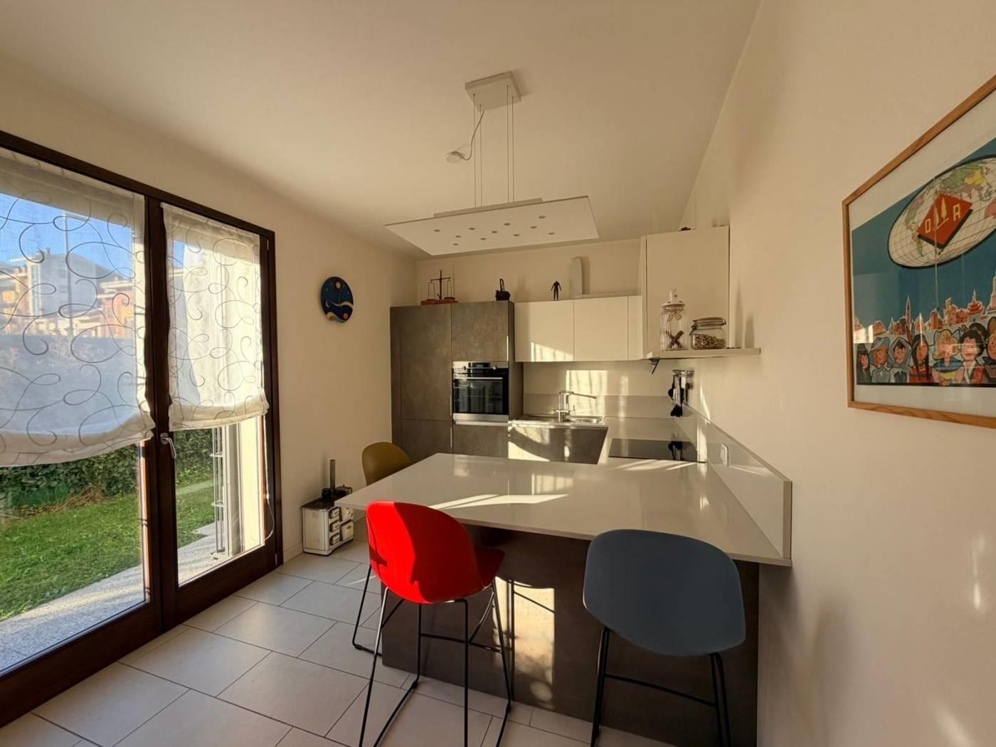 L´appartamento si compone di ingresso su zona living con zona pranzo ed un´ottima vista sul giardino che si scorge dall´ampia vetrata, cucina abitabile con possibilità di arredo anch´essa con sfogo sul giardino, disimpegno, camera matrimoniale, cameretta e due bagni finestrati entrambi dotati di doccia.