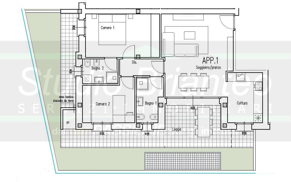 L'appartamento offre un ampio soggiorno con cucina abitabile, caratterizzato da luminose aperture che conducono direttamente a una splendida loggia di 29 mq, ideale per piacevoli momenti all'aperto e cene estive.