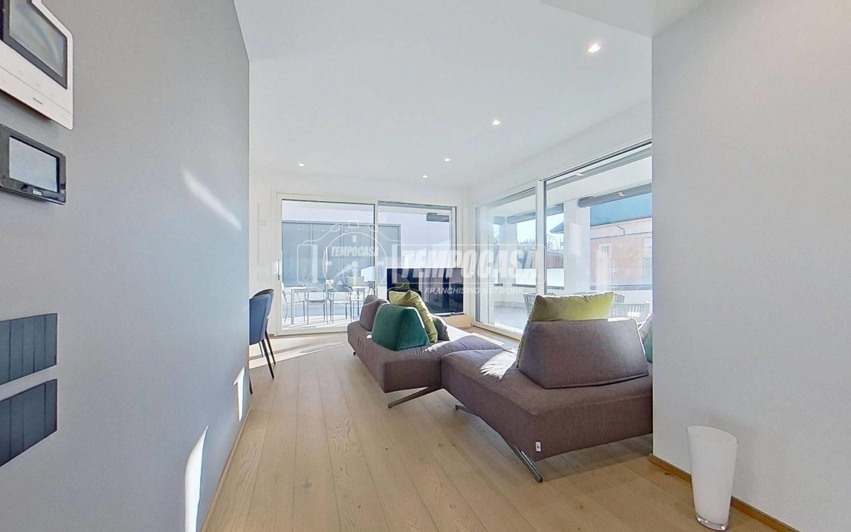 La soluzione presenta: riscaldamento a pavimento, VMC (ventilazione meccanica controllata), tapparelle motorizzate, infissi in triplo vetro pvc effetto legno, aria canalizzata, domotica, ribassamento con faretti, allarme, tende da sole motorizzate e parquet in tutta la superficie.