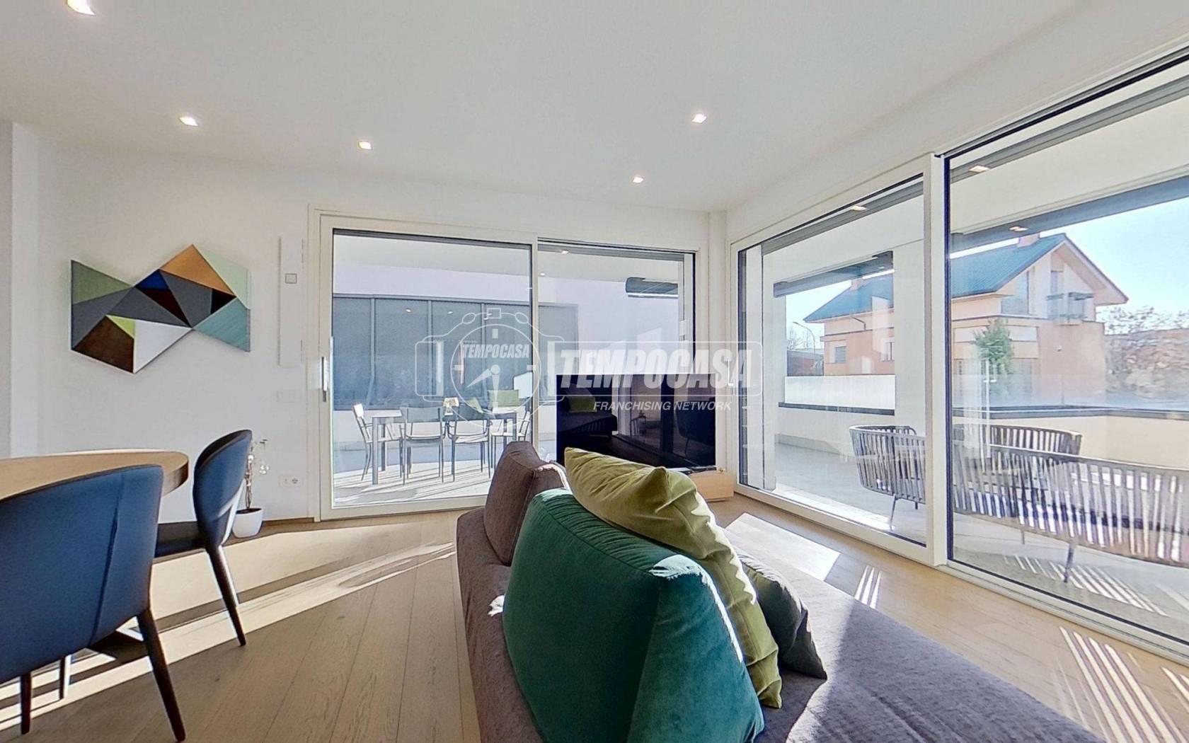 In elegante contesto residenziale del 2022, proponiamo splendido trilocale sito al primo piano con ascensore, ideale per chi cerca comfort, spazi esterni e modernità. L’ingresso si apre su una accogliente e luminosa zona giorno, impreziosita da una cucina con isola in stile americano, perfetta per momenti conviviali. Le due ampie porte finestre garantiscono una straordinaria luminosità e conducono allo spettacolare terrazzo di circa 80 mq, uno spazio unico dove trascorrere piacevoli giornate all’aria aperta in compagnia di amici e familiari.