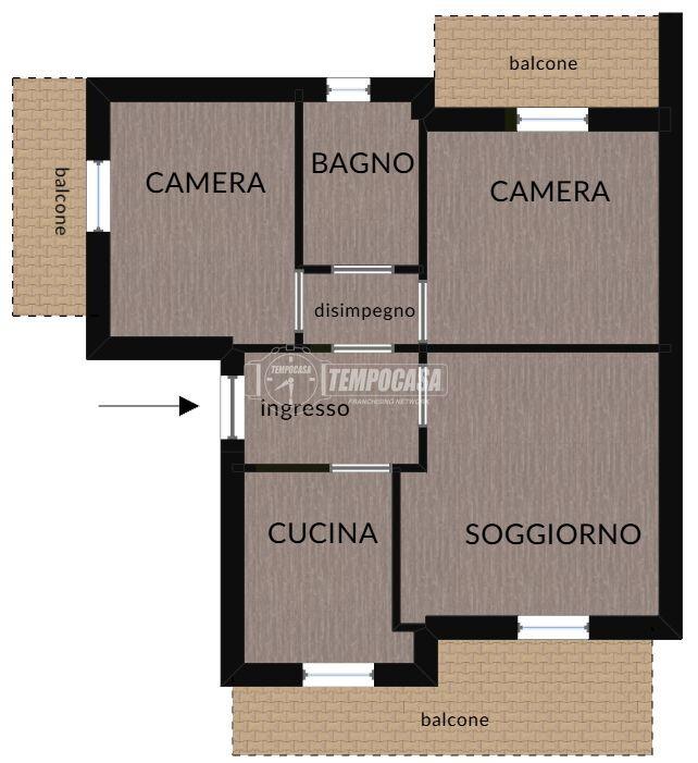 La zona notte è pensata per garantire comfort e privacy. Le due camere da letto sono spaziose e facilmente arredabili, entrambe con accesso al proprio balcone, un dettaglio che rende gli ambienti ancora più ariosi e piacevoli. Il bagno finestrato completa l’abitazione con funzionalità e luce naturale, assicurando un ambiente pratico e ben organizzato.