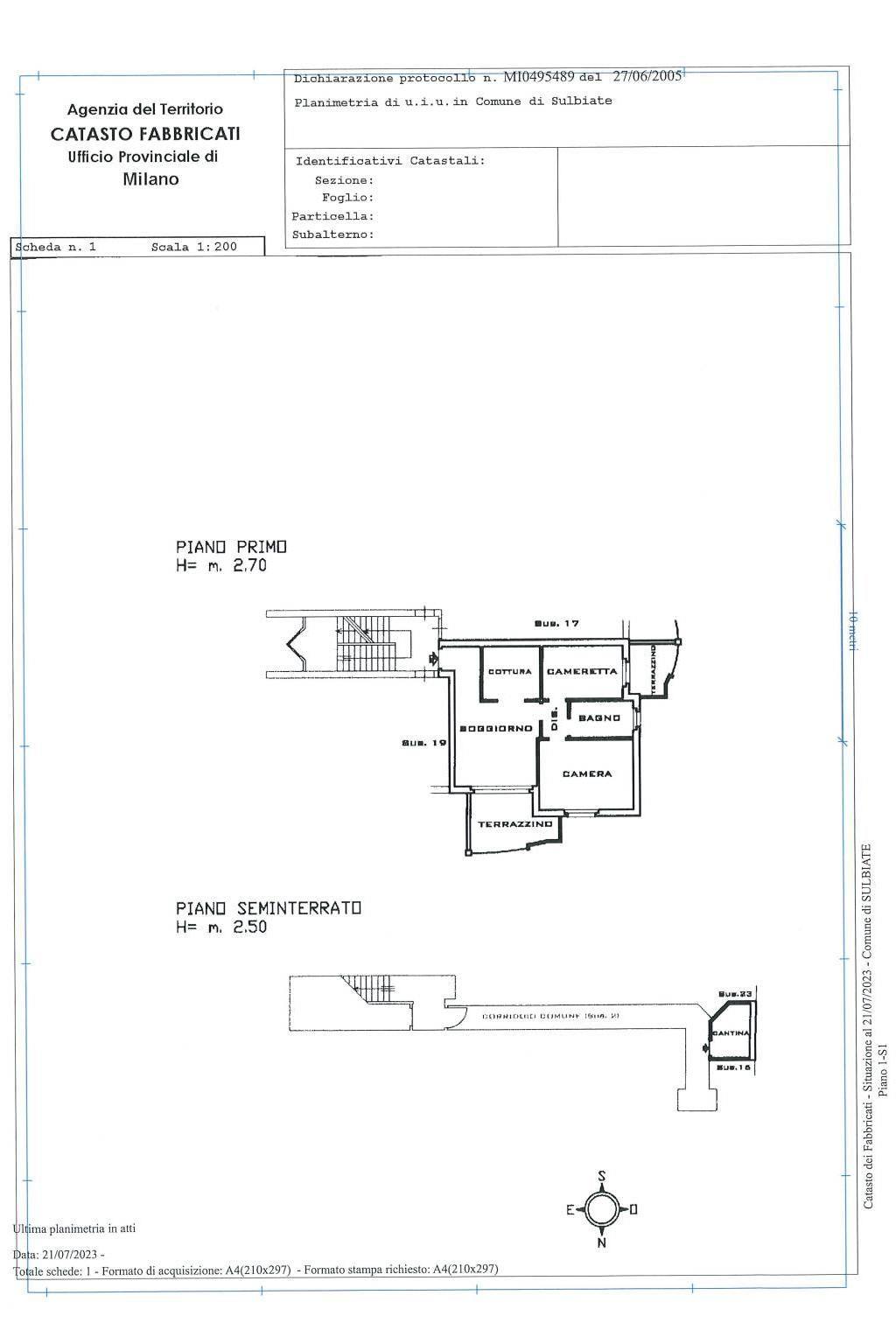 Completa la proprietà la cantina di 7,00mq.