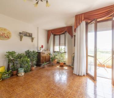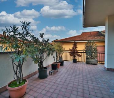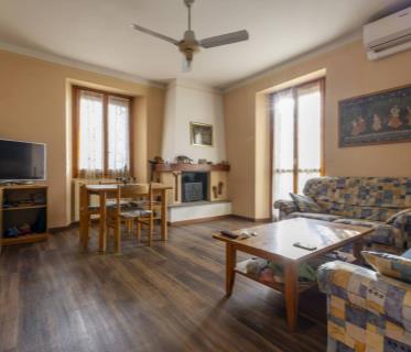 L'ingresso dell'appartamento conduce direttamente alla zona giorno, composta da cucina abitabile e un accogliente soggiorno, reso unico dal caratteristico ingresso ad arco e dall'accesso al terrazzo coperto, ideale per momenti di relax o pranzi all'aperto.