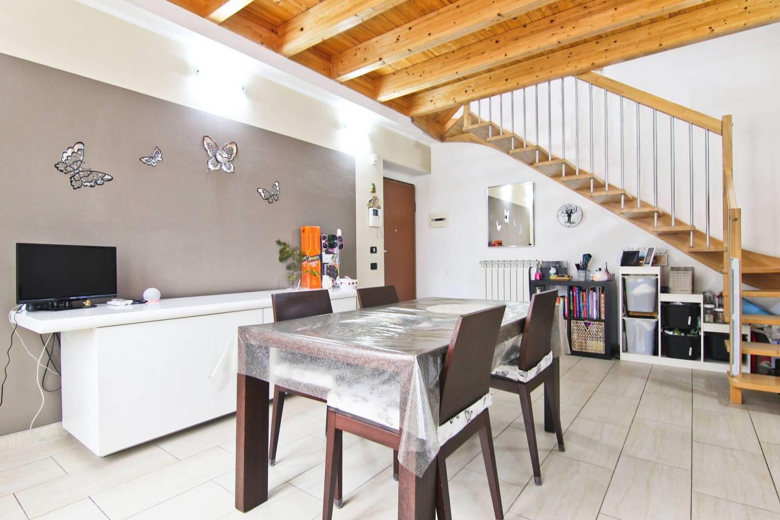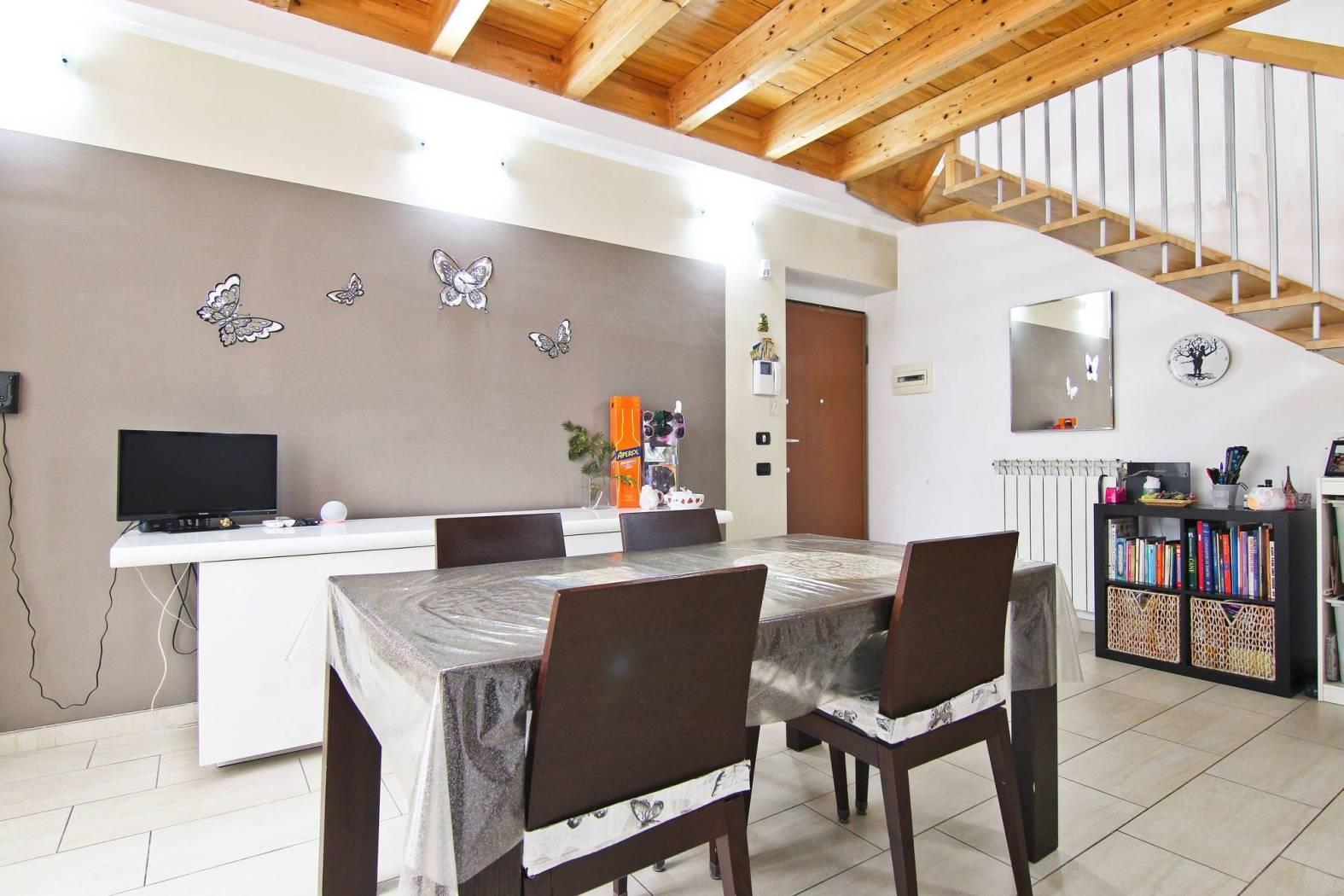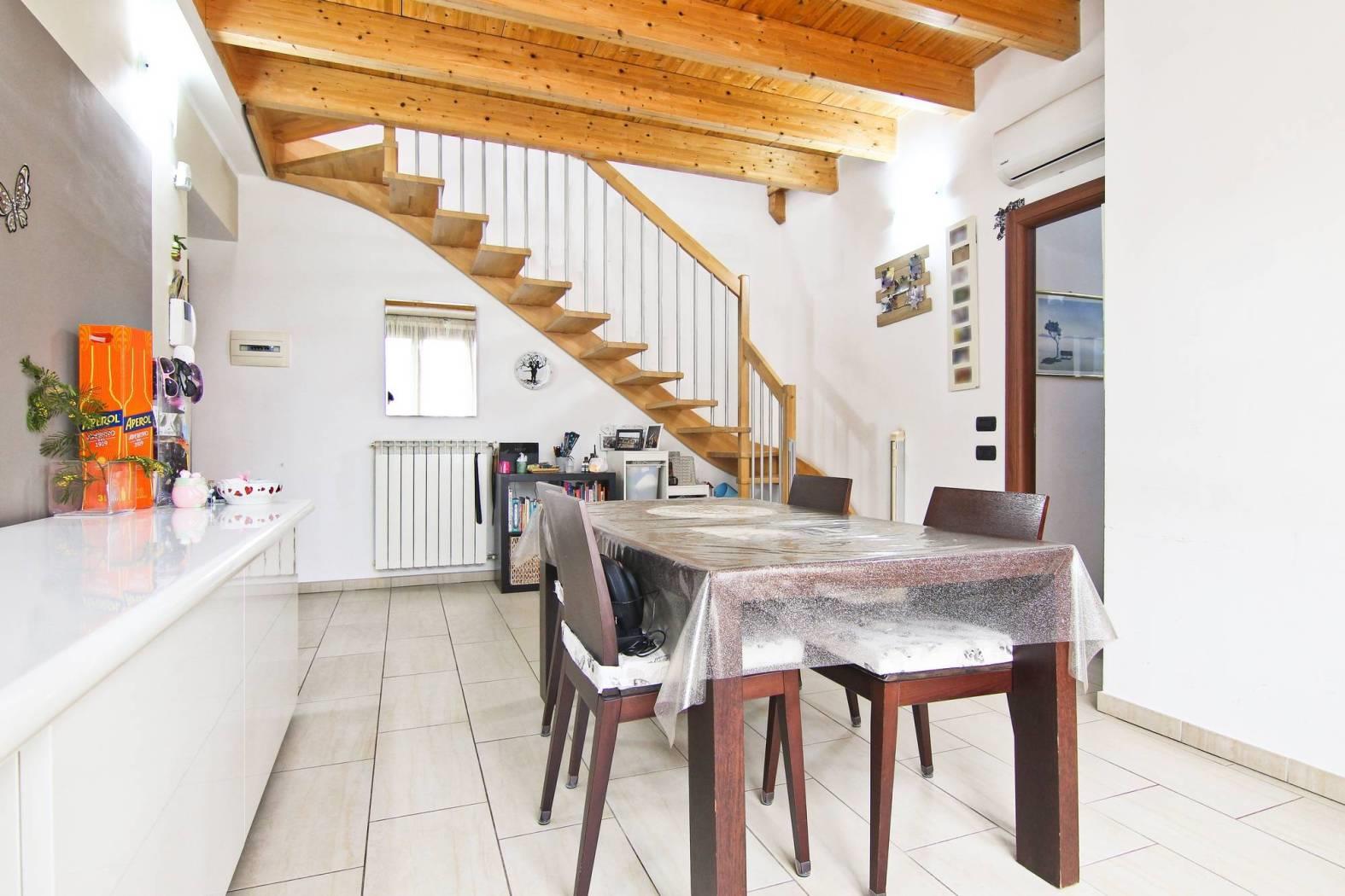 L’ingresso è nel soggiorno, comodo negli spazi, dove domina il finestrone che consente l’accesso al profondo terrazzo, un vero e proprio locale all’aperto. La cucina, posta sul lato, è abitabile e in grado di ospitare il tavolo da pranzo. La scala lineare collega il soppalco, che ricalca la superficie del soggiorno, ricavando un ampio locale destinato a svariati usi, dotato di velux e finestra.