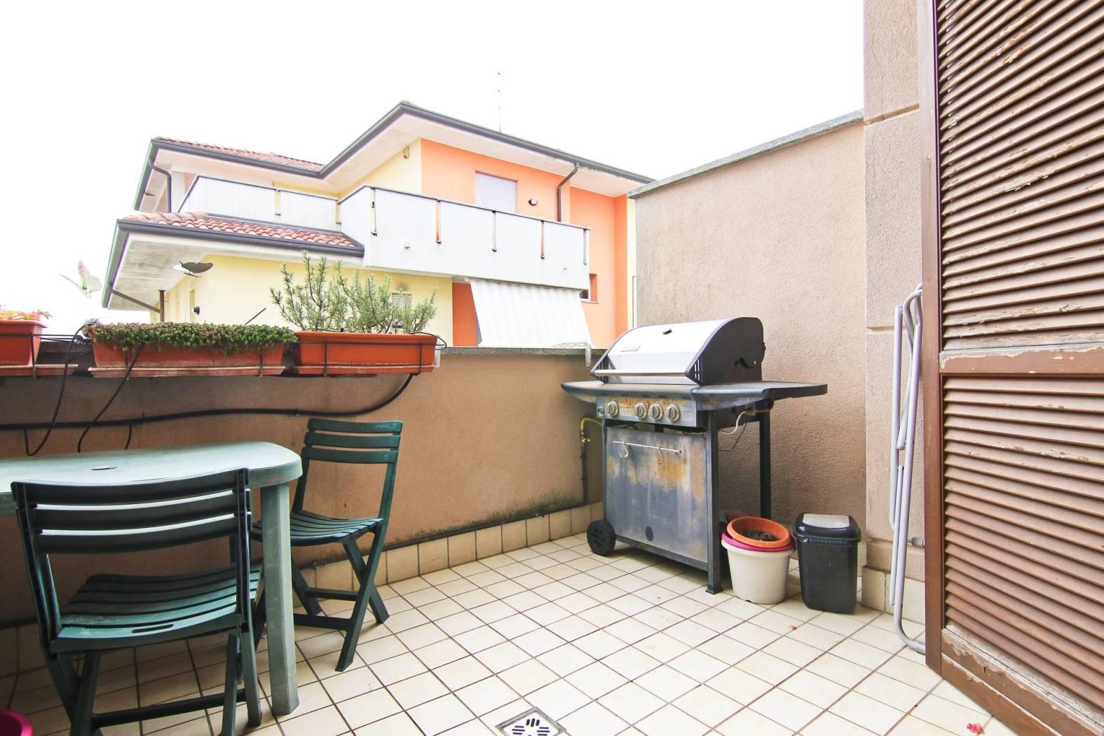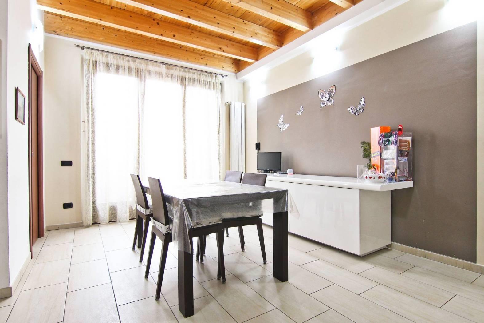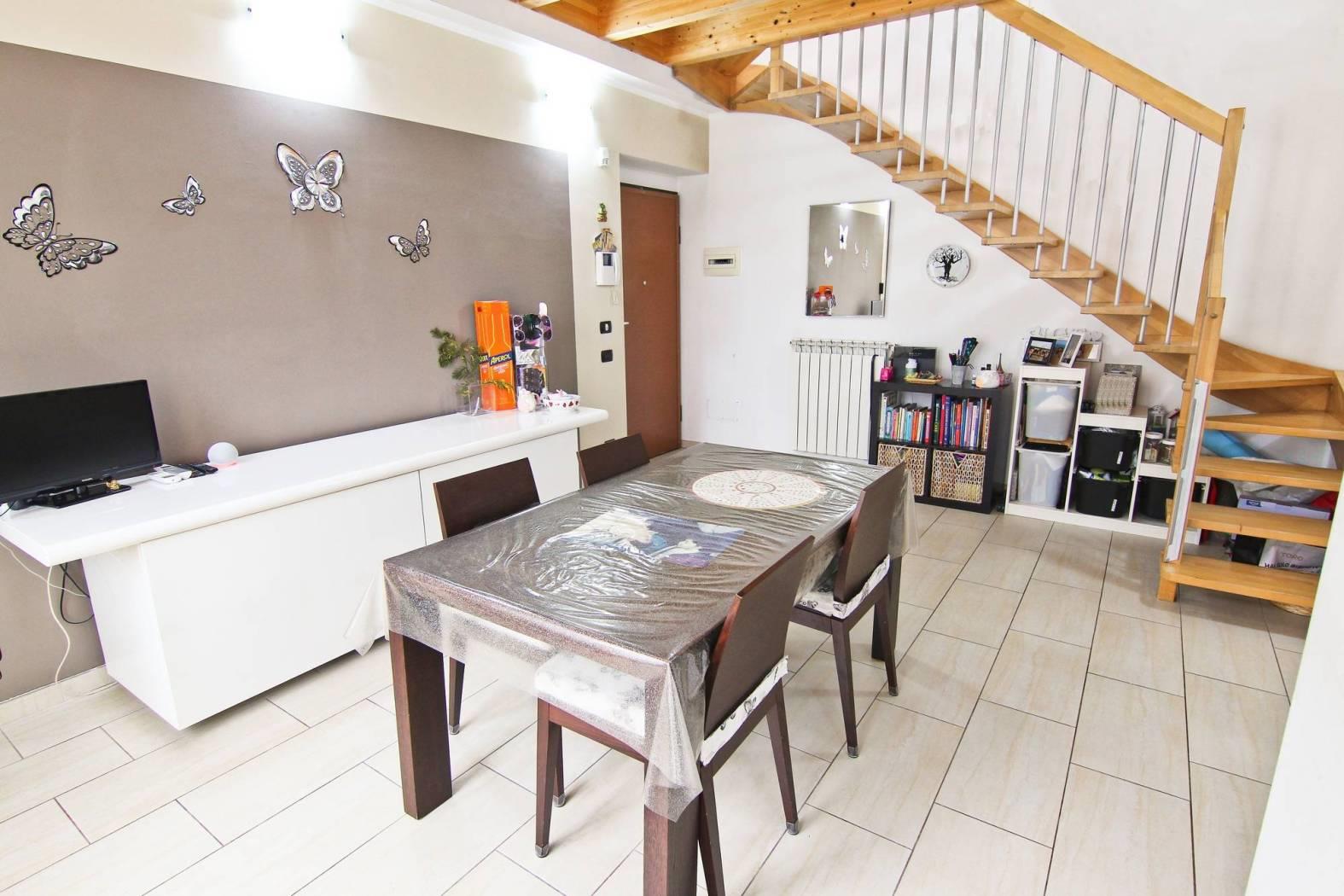 L’ingresso è nel soggiorno, comodo negli spazi, dove domina il finestrone che consente l’accesso al profondo terrazzo, un vero e proprio locale all’aperto. La cucina, posta sul lato, è abitabile e in grado di ospitare il tavolo da pranzo. La scala lineare collega il soppalco, che ricalca la superficie del soggiorno, ricavando un ampio locale destinato a svariati usi, dotato di velux e finestra.