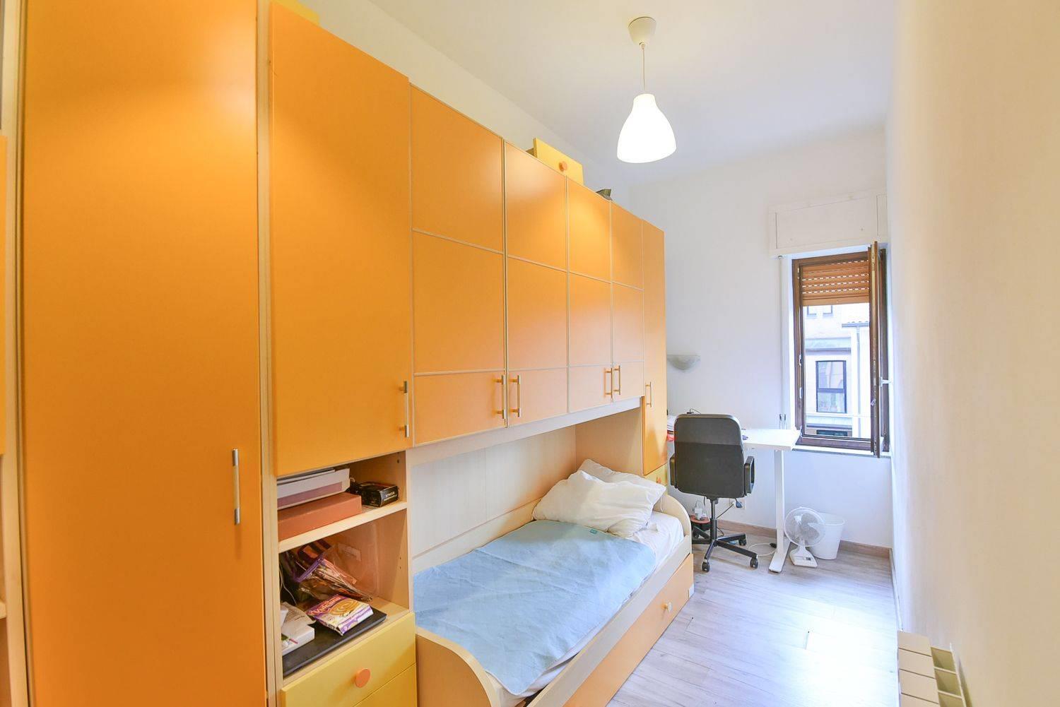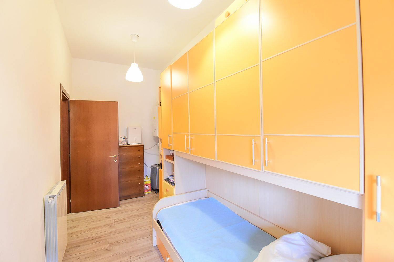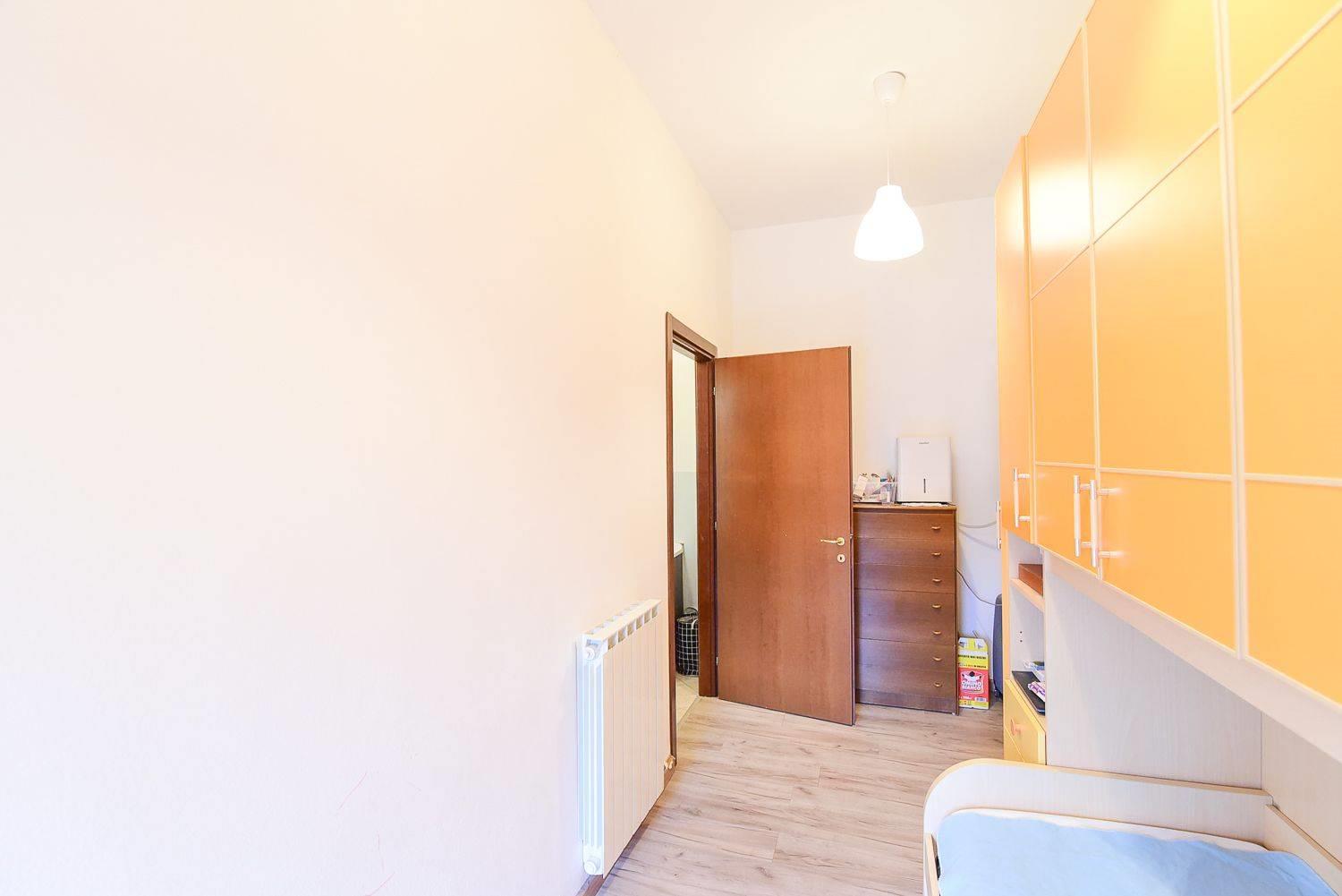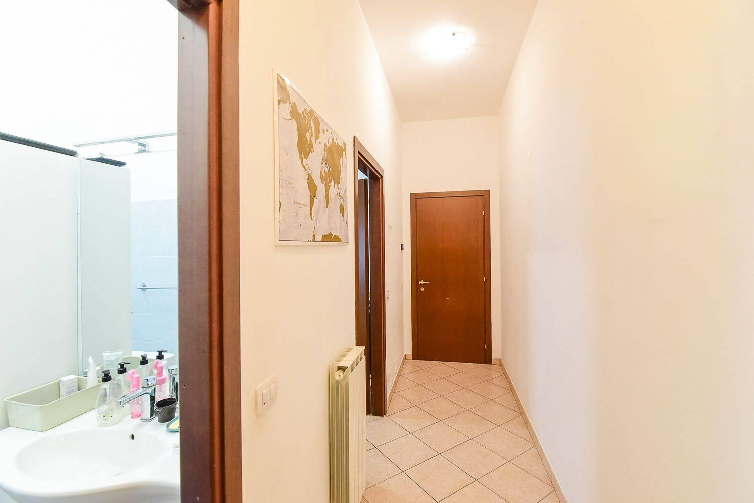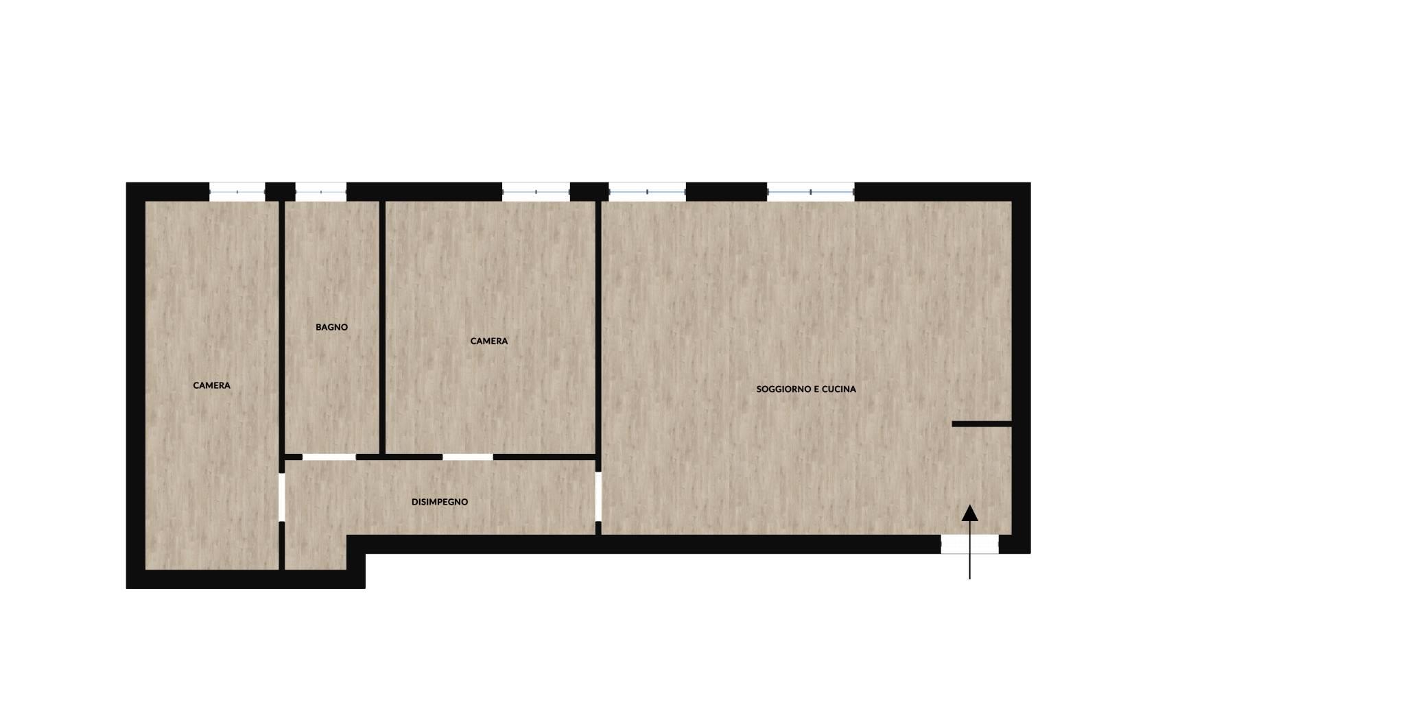 L’appartamento offre una disposizione semplice e funzionale: la zona giorno è composta da soggiorno con cucina a vista, un ambiente pratico e ben organizzato, mentre il disimpegno conduce alle due camere da letto, entrambe spaziose, e al bagno finestrato.