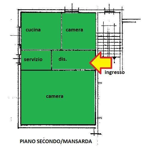 CASTELMARTE: J56. Appartamento al piano secondo/mansardato di totali mq. 105. Composto da: ingresso, ambiente a giorno, disimpegno, due camere e servizio. Da ristrutturare. Con posto auto esterno non di proprietà. Termoautonomo a metano. €. 45.000,00