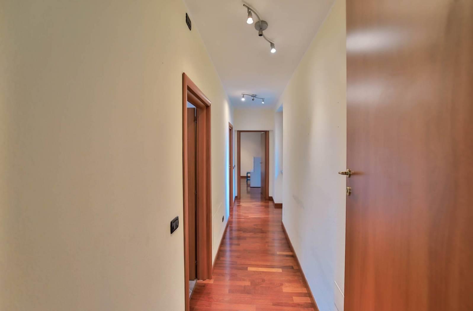 Un corridoio collega tutti gli ambienti di casa: