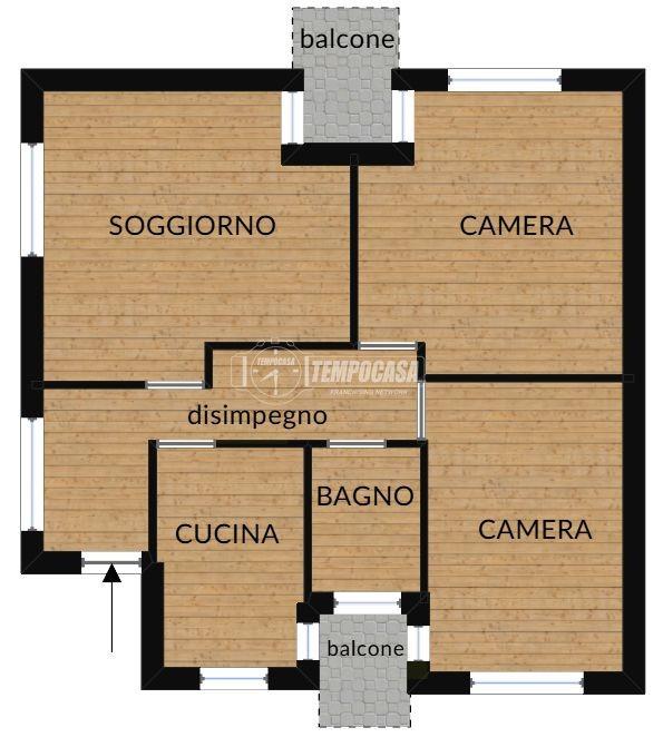 L’appartamento offre ambienti spaziosi e funzionali ed è così composto: ingresso, soggiorno con accesso al balcone, cucina separata con accesso al balcone, due camere da letto entrambe con accesso al balcone e bagno finestrato.