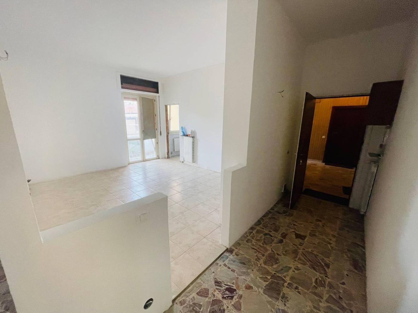 Appartamento in palazzina situata nel centro del paese, composto da ingresso, soggiorno con cucina a vista e accesso al balcone, disimpegno, due camere da letto e bagno. Soluzione ben distribuita e comoda a tutti i principali servizi.