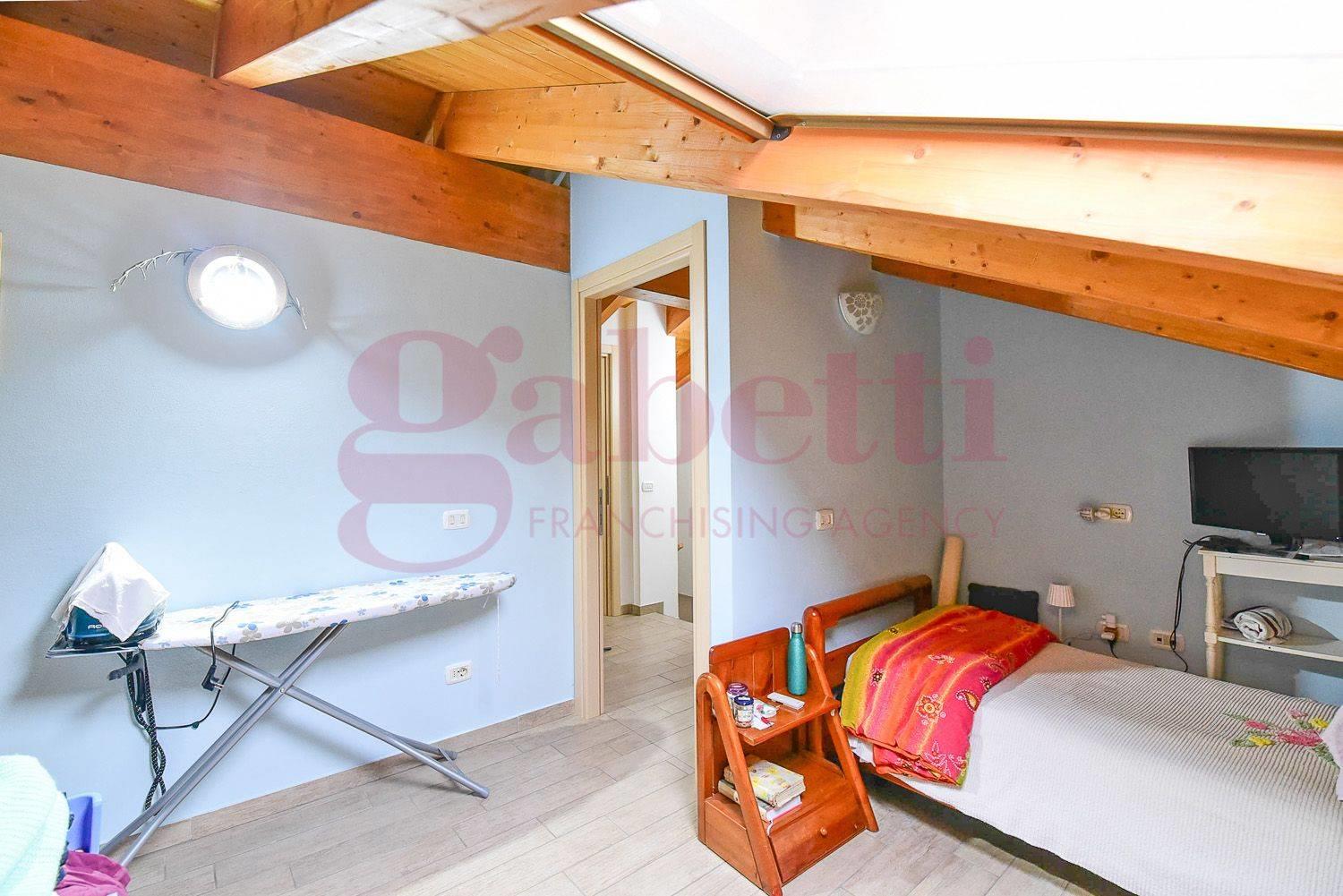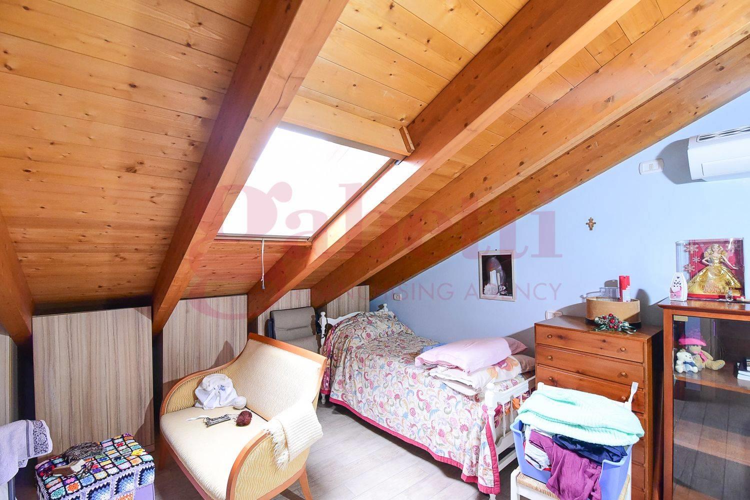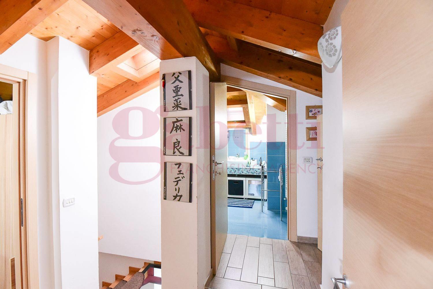 Una comoda scala interna conduce al piano superiore mansardato, dove sono presenti due ulteriori camere ed un secondo bagno.