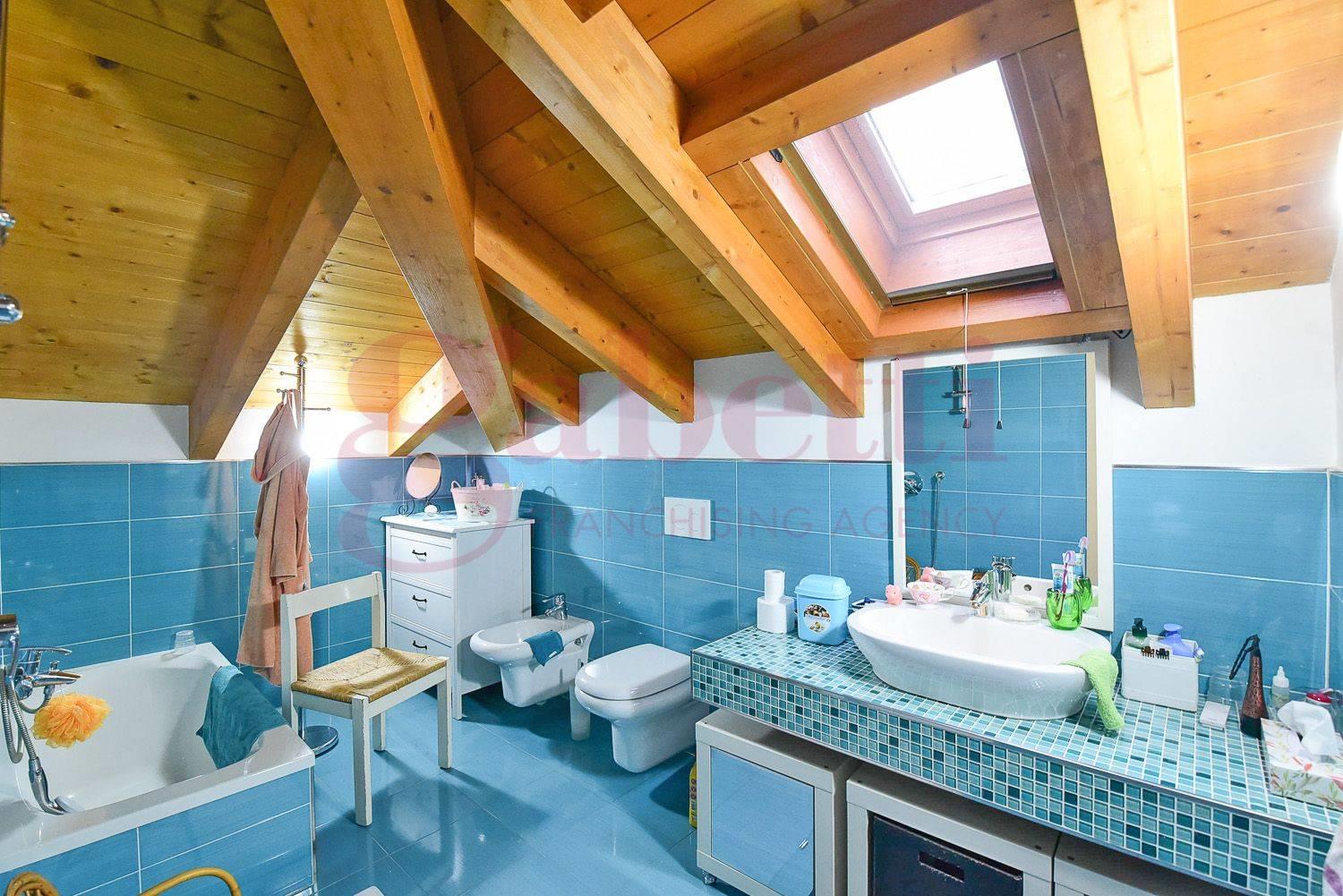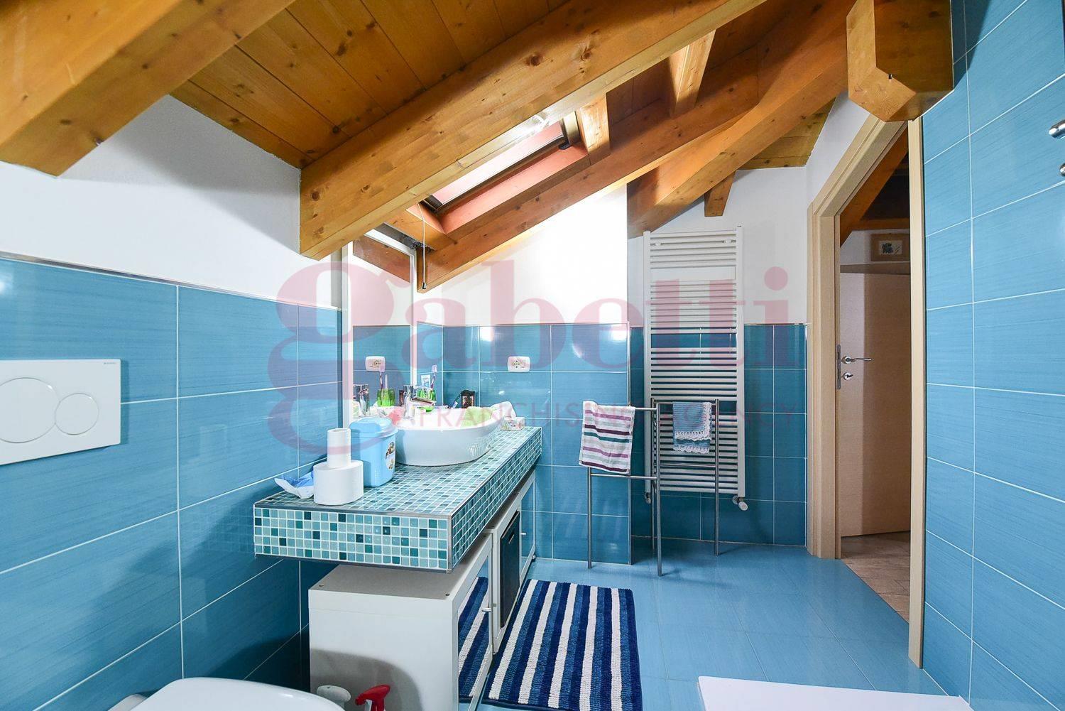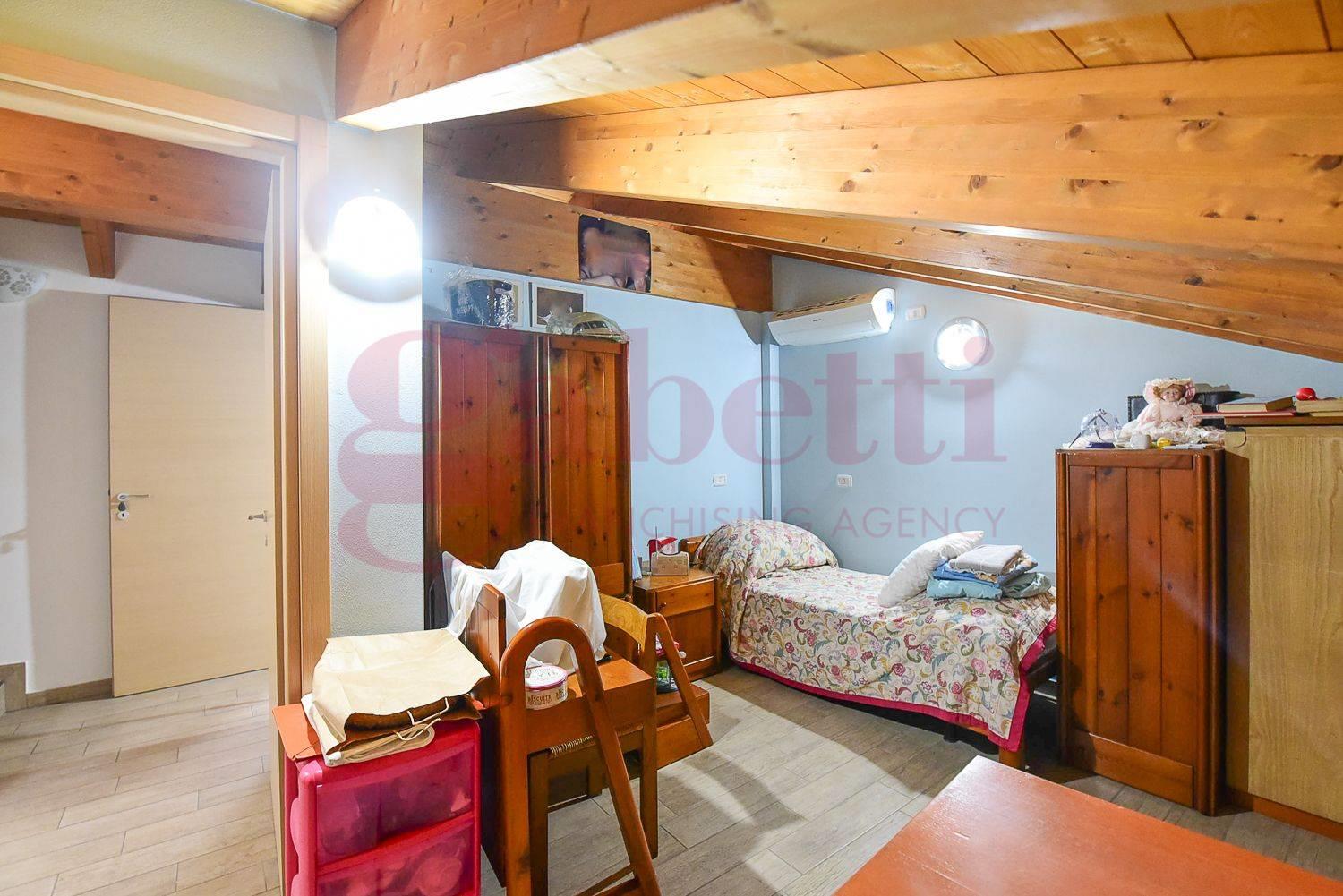 Una comoda scala interna conduce al piano superiore mansardato, dove sono presenti due ulteriori camere ed un secondo bagno.