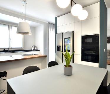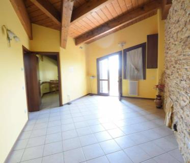 Tutta la casa è caratterizzata dalle travi a vista che donano fascino all'appartamento, l'altezza massima è di circa 4 metri e gli ambienti risultano luminosi e spaziosi, è accessoriata di tende da sole e climatizzatore. Compreso nel prezzo un box singolo di 18 mq e la cantina.