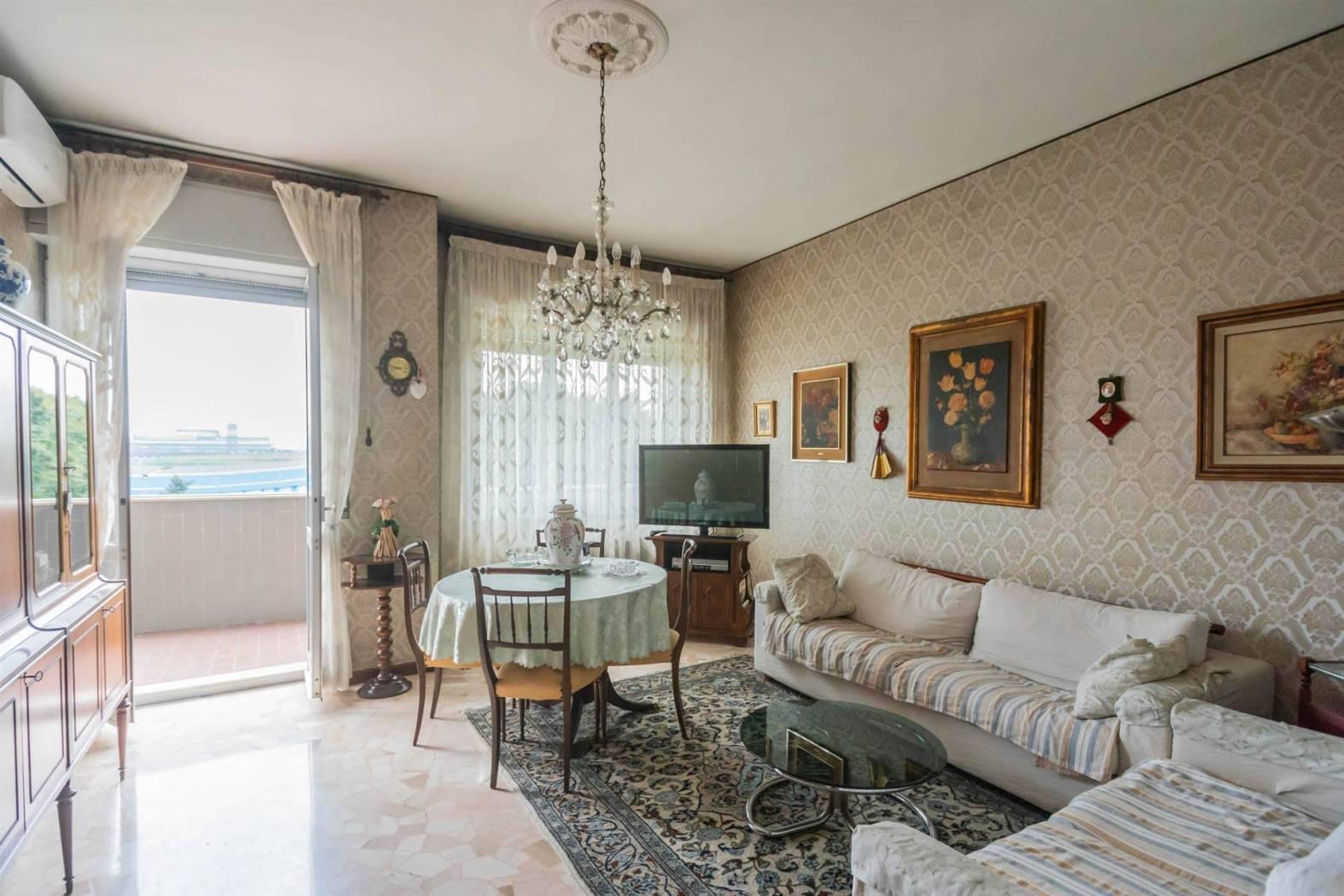 È composto da ingresso, ampio soggiorno con accesso alla balconata, cucina abitabile con secondo balcone, due spaziose camere da letto, bagno finestrato e comodo ripostiglio. Completa la proprietà una cantina di pertinenza.