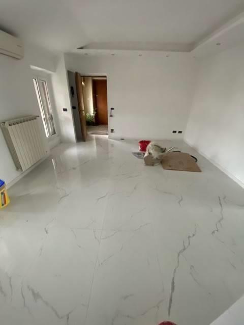 ingresso, soggiorno, cucina separata, 2 camere, 2 bagni e balcone.