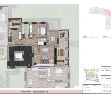 L'appartamento si compone di spaziosa zona giorno con soggiorno che si affaccia su un terrazzo di 26,61 mq e cucina con ulteriore accesso al terrazzo, camera matrimoniale, cameretta con balcone, Due bagni, uno finestrato e uno cieco, per garantire massima funzionalità.