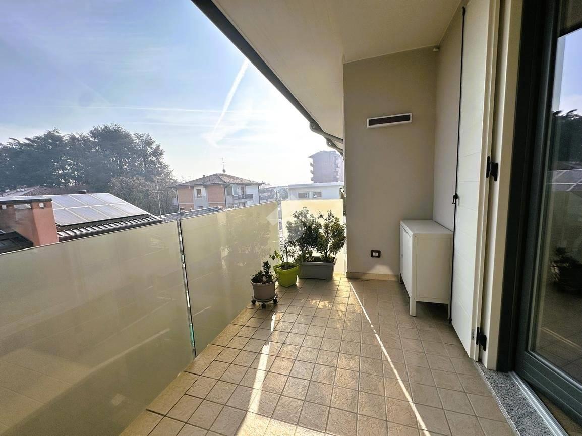 Vimercate Centro. In recente palazzina, posizione tranquilla e non direttamente su strada, proponiamo in vendita un appartamento ideale per chi desidera vivere in centro, senza rinunciare a privacy e comfort. L’ingresso è diretto sul luminoso soggiorno con ampia zona cottura, reso particolarmente piacevole dalla presenza di un terrazzino ben vivibile. Un comodo disimpegno conduce alla zona notte, composta da camera matrimoniale con balcone e da una spaziosa camera doppia con ulteriore terrazzino. L’abitazione dispone inoltre di due bagni entrambi finestrati, completi di vasca e doccia, oltre ad un pratico ripostiglio.
