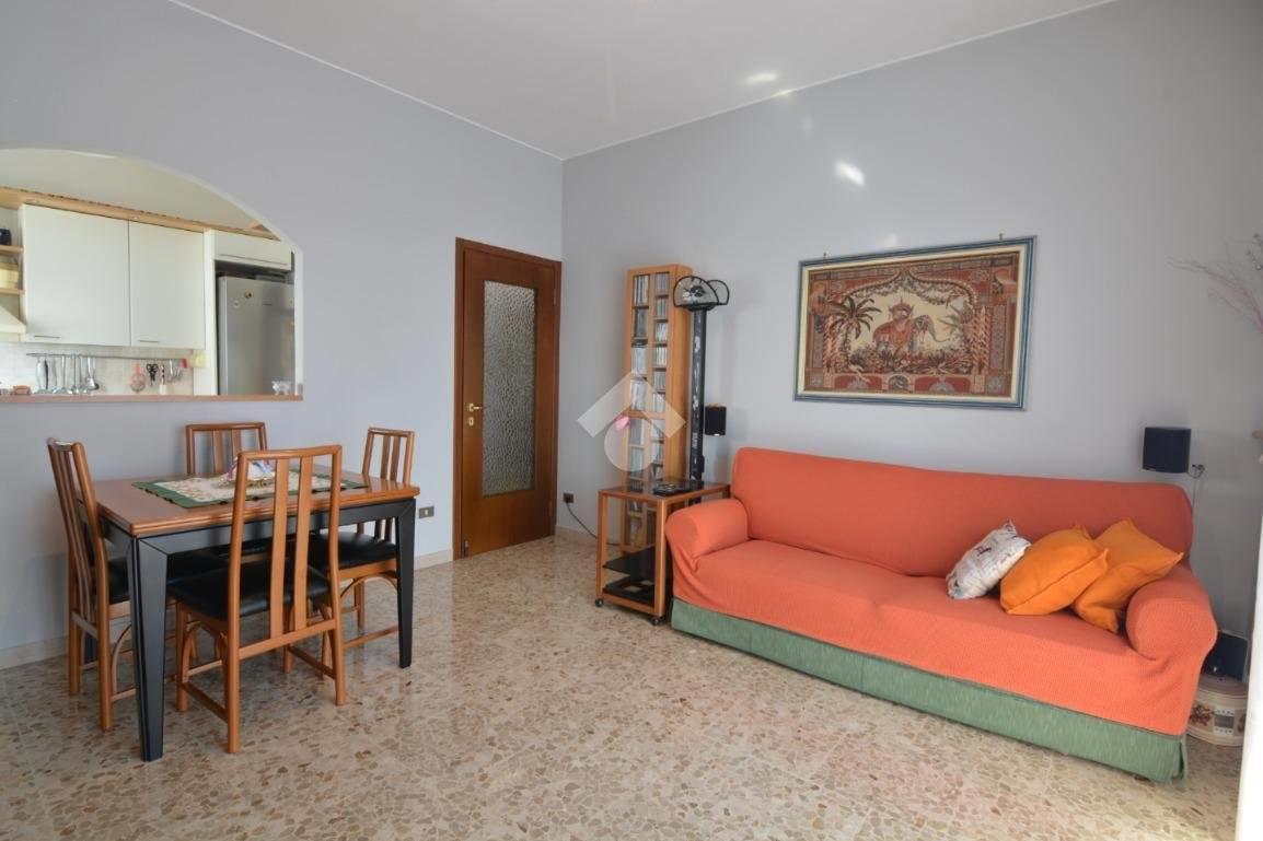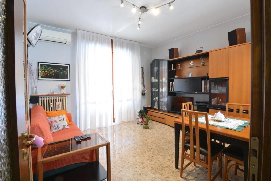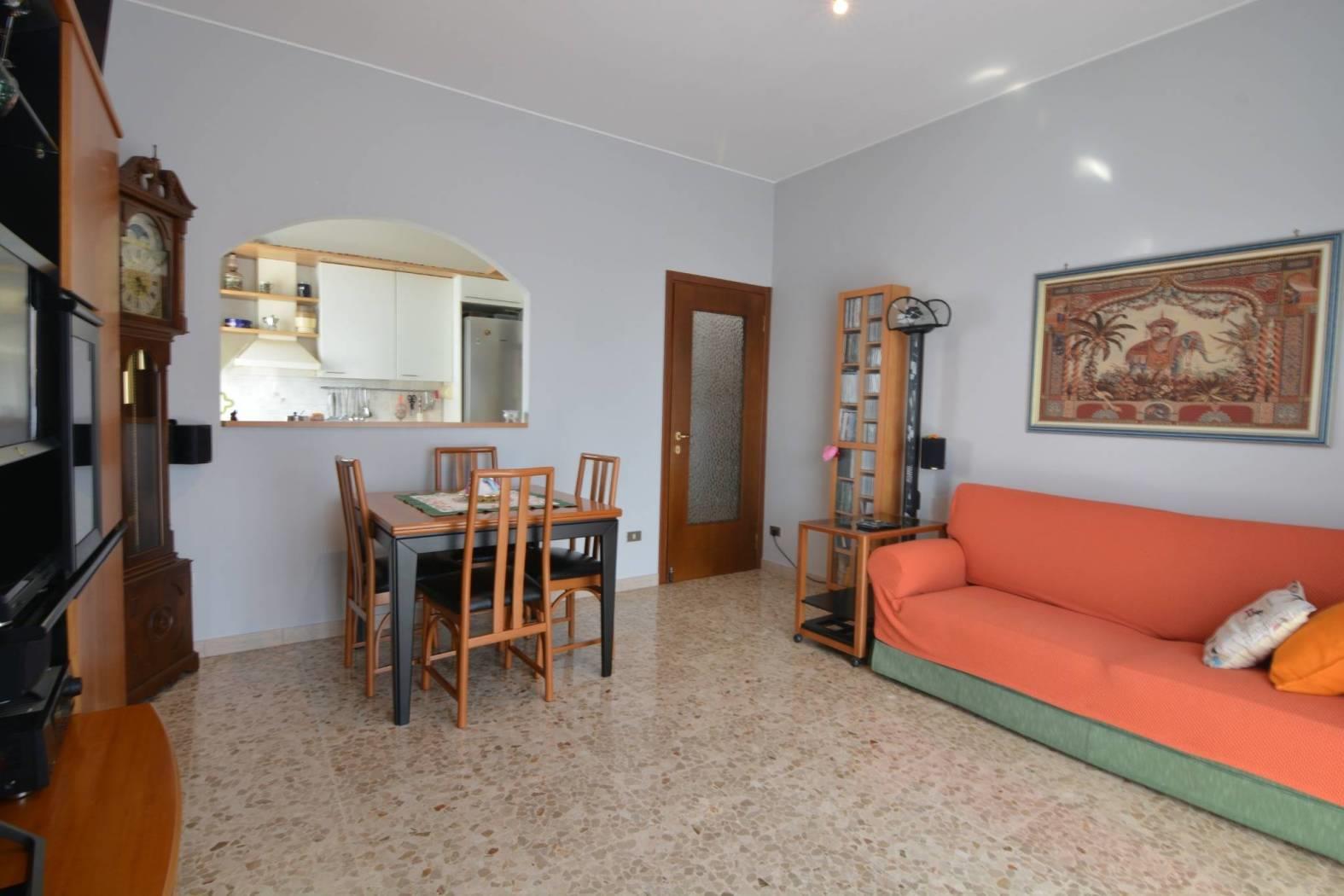 Dall'ingresso si accede al corridoio sul quale si aprono i diversi ambienti e dove è stato ricavato un comodo e sempre utile ripostiglio. Soggiorno con balcone, cucina separata abitabile, servizio finestrato con doccia rinnovato nel 2003 e due camere da letto matrimoniali entrambe con balcone e pavimenti in parquet.