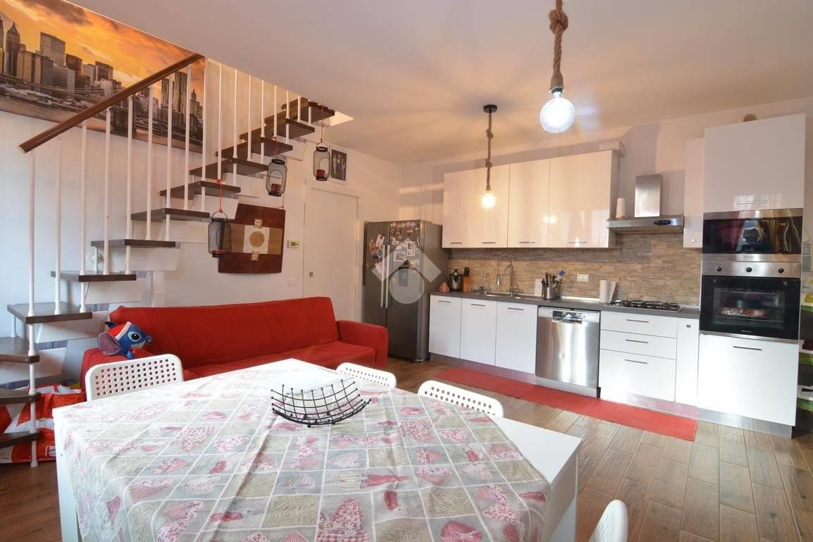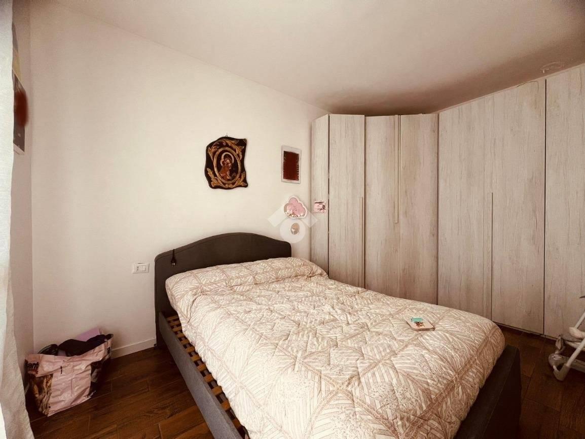 L'ingresso si apre direttamente nella zona giorno composta da un unico locale open space con cucina a vista e due finestre che donano molta luminosità all'ambiente. Dal disimpegno si accede al primo servizio finestrato con doccia e alla camera da letto matrimoniale servita da balcone.