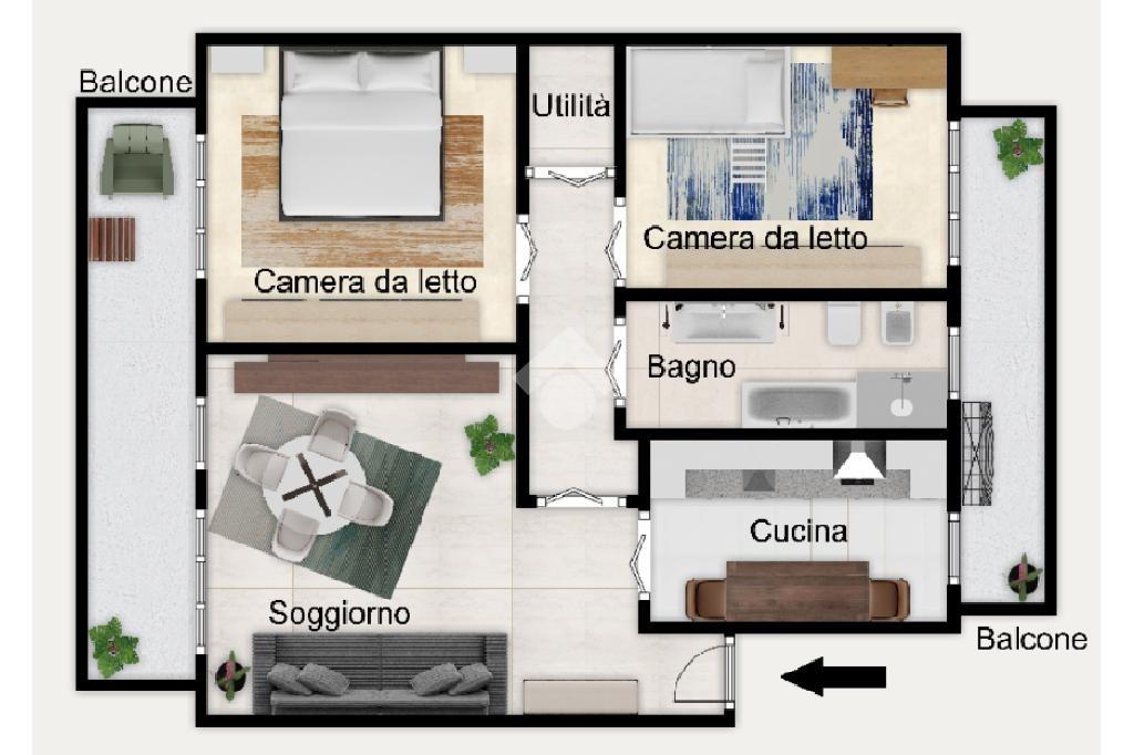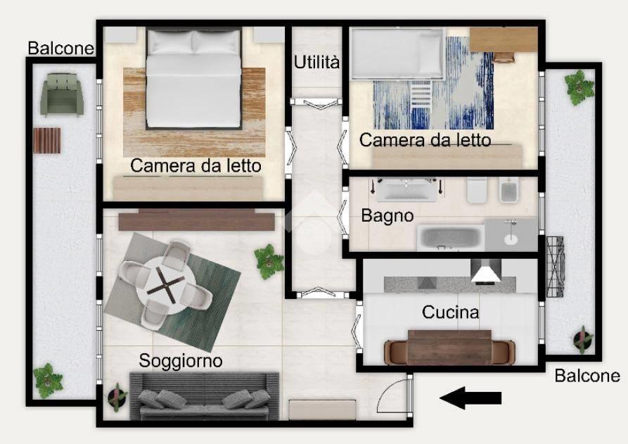 L'abitazione si presenta in buono stato di conservazione e offre ambienti funzionali e ben distribuiti: un soggiorno luminoso, una cucina abitabile, due camere da letto, bagno e ripostiglio.
