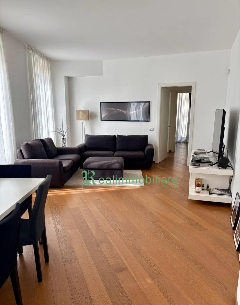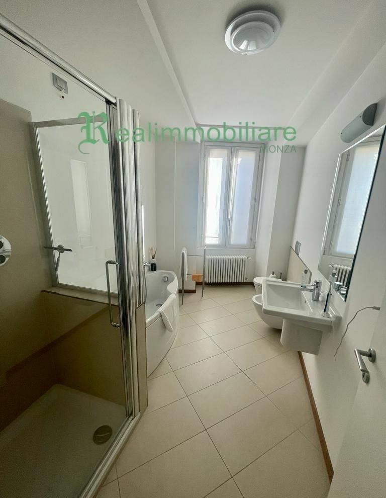 Monza centro storico, isola pedonale fronte duomo, in prestigiosa casa d’epoca ristrutturata, caratterizzata da finiture signorili, aria condizionata e servizio di vigilanza, proponiamo in affitto appartamento vista Duomo di 110 mq. L’appartamento è composto da: ingresso, ampio soggiorno, cucinotto, due camere, due bagni. L’immobile è completamente arredato con mobili di pregio e moderni ed ha in ultimo un locale al piano interrato ad uso lavanderia/cantina. Riscaldamento e aria condizionata in tutto l’immobile. Prezzo € 1.900 mensile, spese condominiali di € 300 mensili. Poss. tà posto auto coperto a € 200 mensili. Classe energetica C – IPE 73,30.