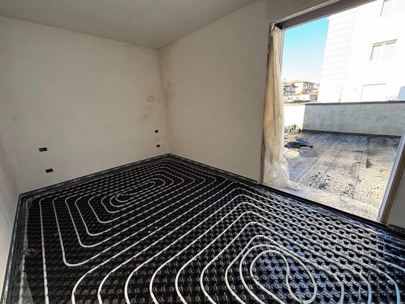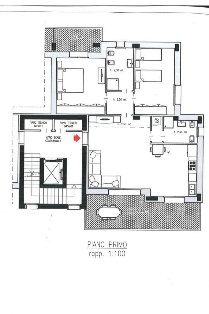 L'appartamento 'D' è posto al primo piano . L'abitazione si apre nell'ampio soggiorno con la cucina abitabile, gli ambienti si affacciano sul terrazzo. Il disimpegno conduce alla zona notte con due camere da letto ed i doppi servizi entrambi finestrati . Tripla esposizione. Riscaldamento a pavimento. Predisposizione aria condizionata e antifurto.