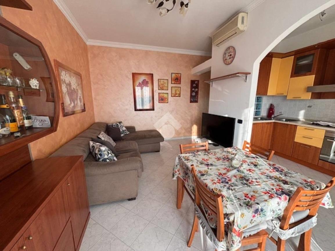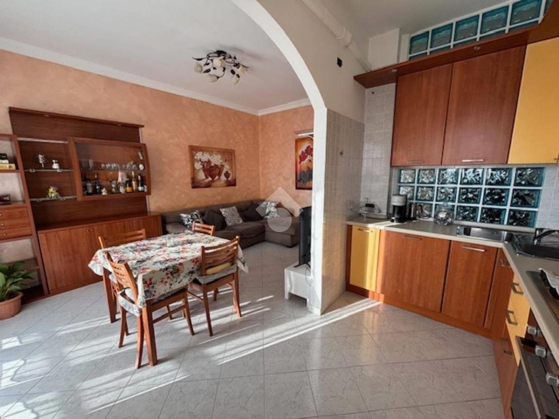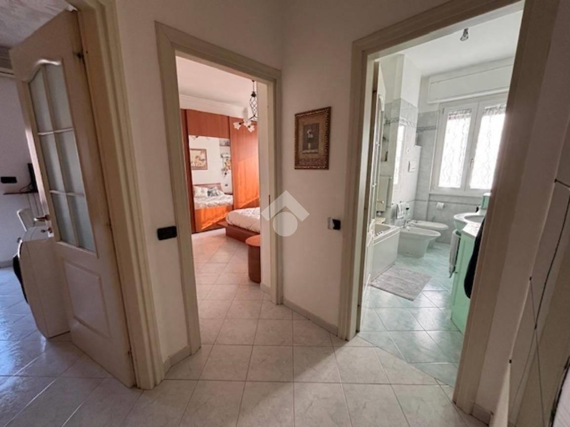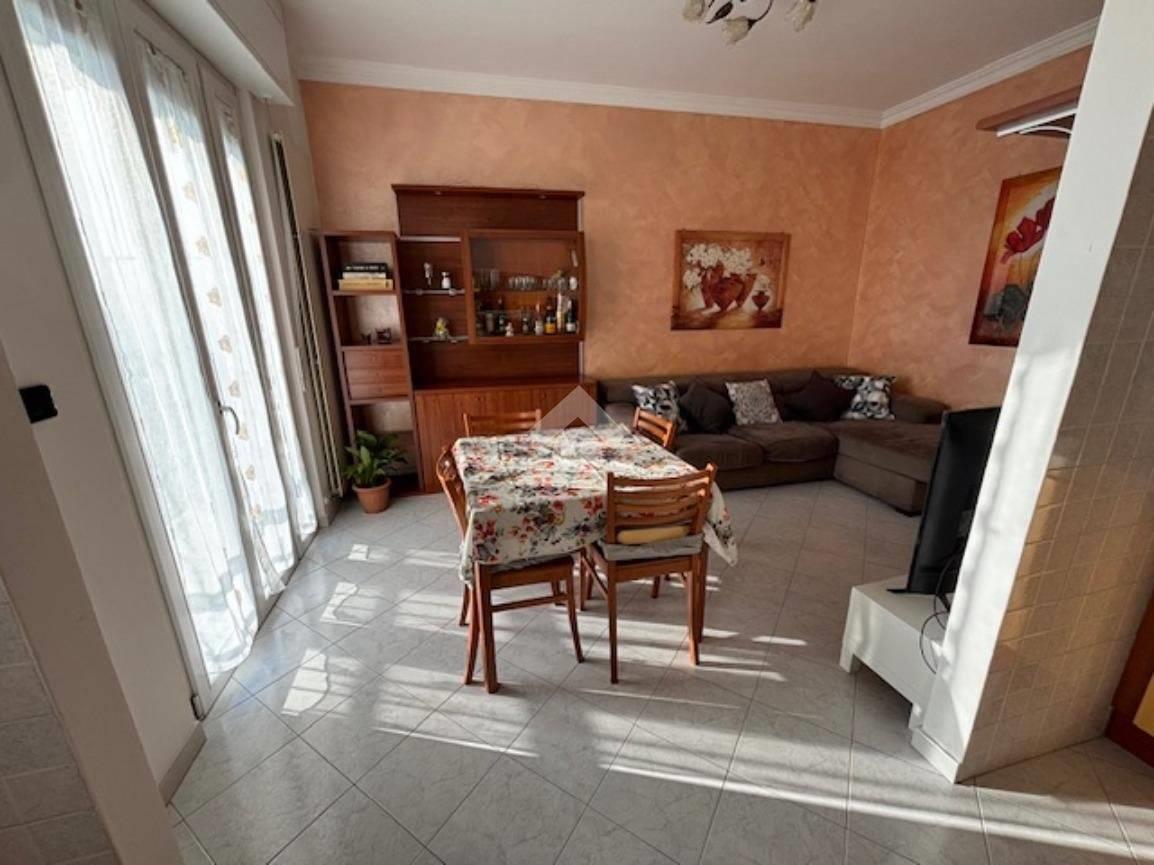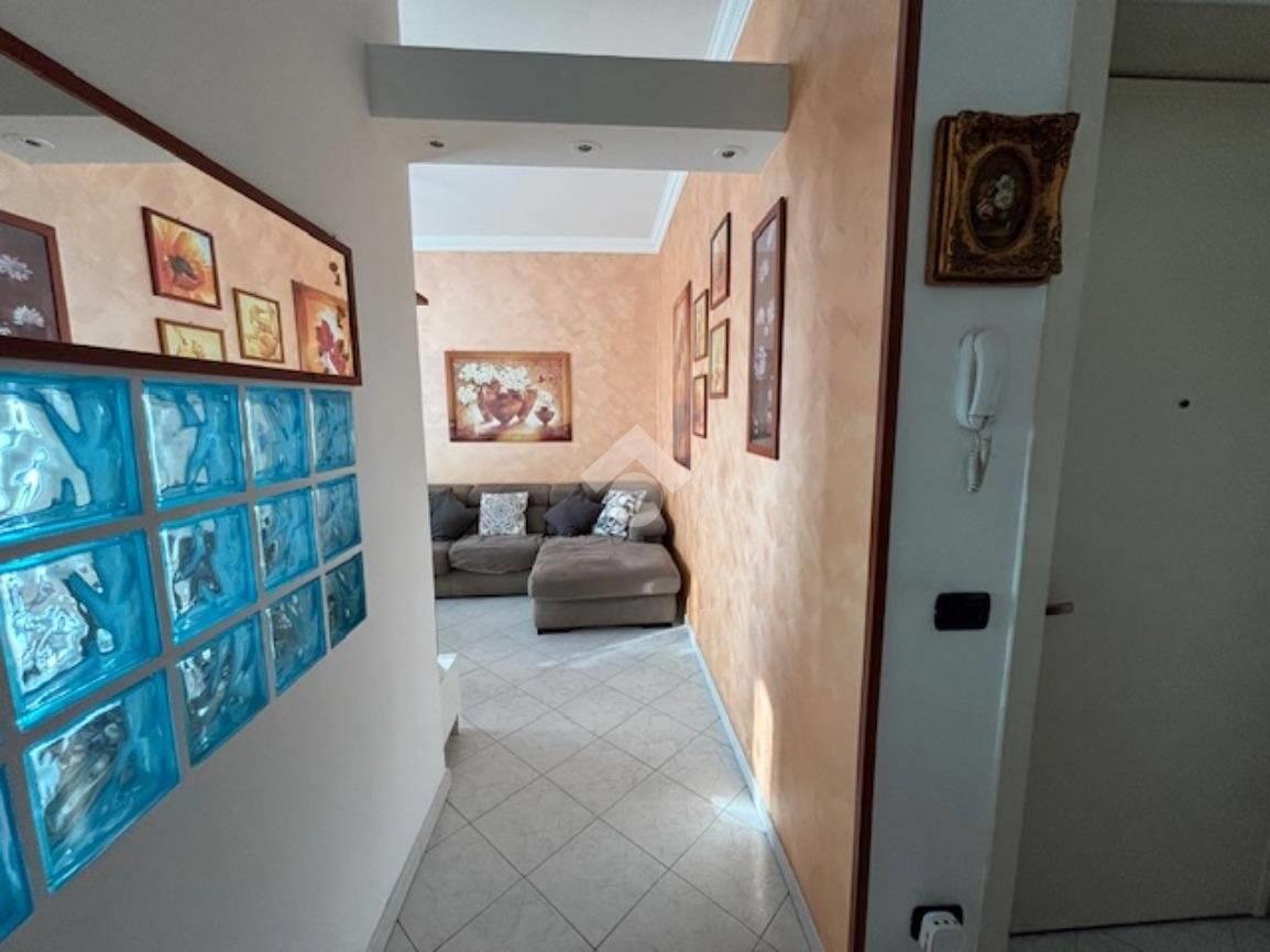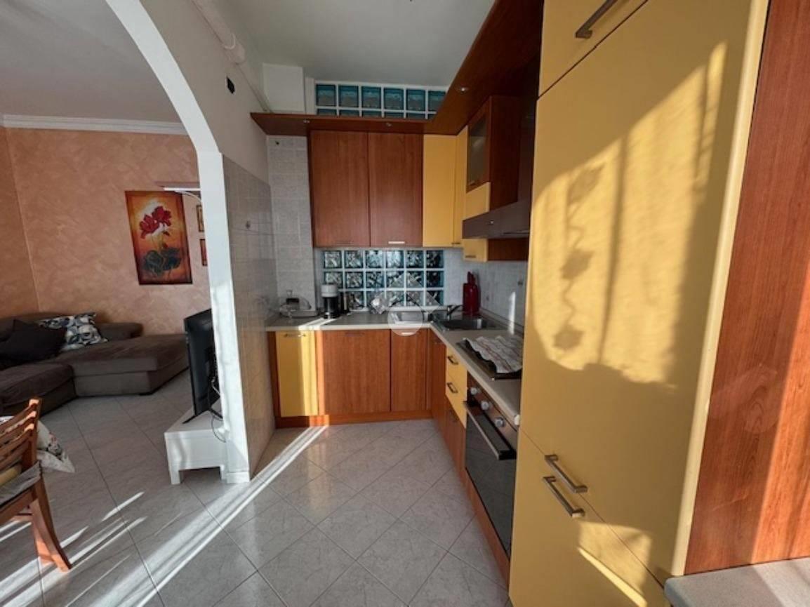 L'appartamento posto all'ultimo piano , si apre nello spazioso ingresso che conduce al luminoso soggiorno esposto a sud ed affacciato su un lungo balcone che gode di una vista aperta, a fianco troviamo la cucina abitabile resa a vista sulla zona giorno.