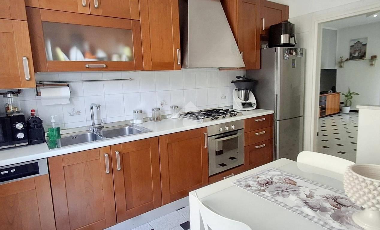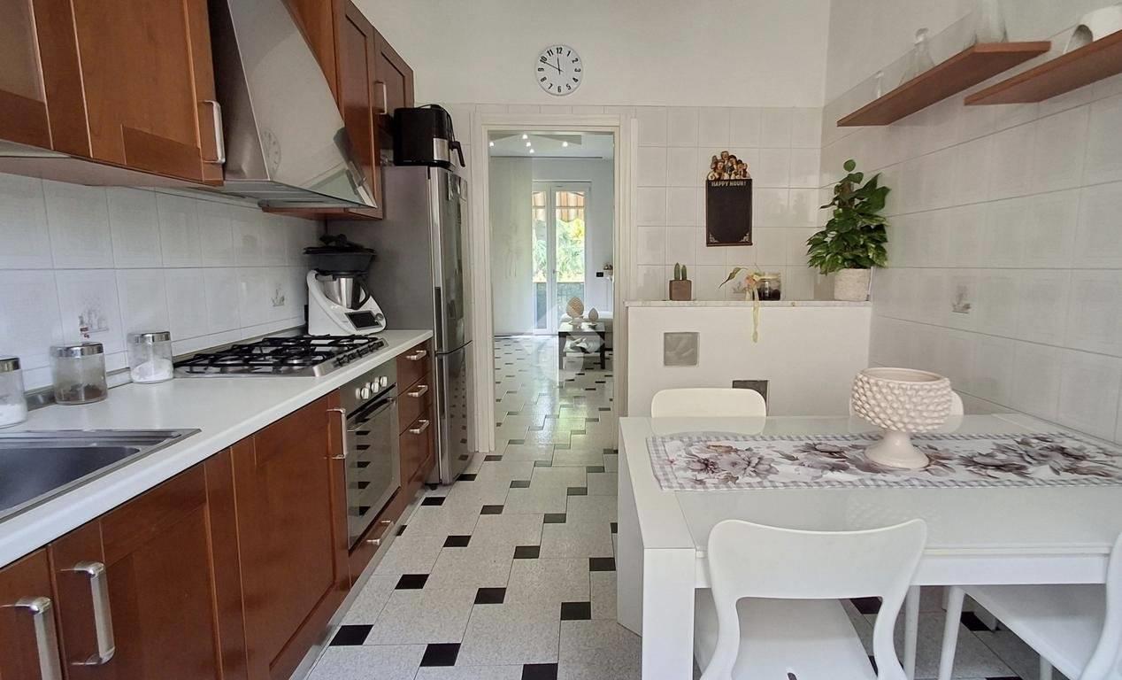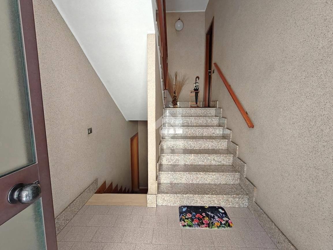L'appartamento è composto da: ampio soggiorno con uscita su una balconata, cucina abitabile, 2 camere e un bagno; tramite una scala interna alla cucina, si accede alla taverna composta da un locale unico e un bagno finestrato adibito anche a lavanderia. Alla taverna si può accedere anche dalla scala comune esterna.
