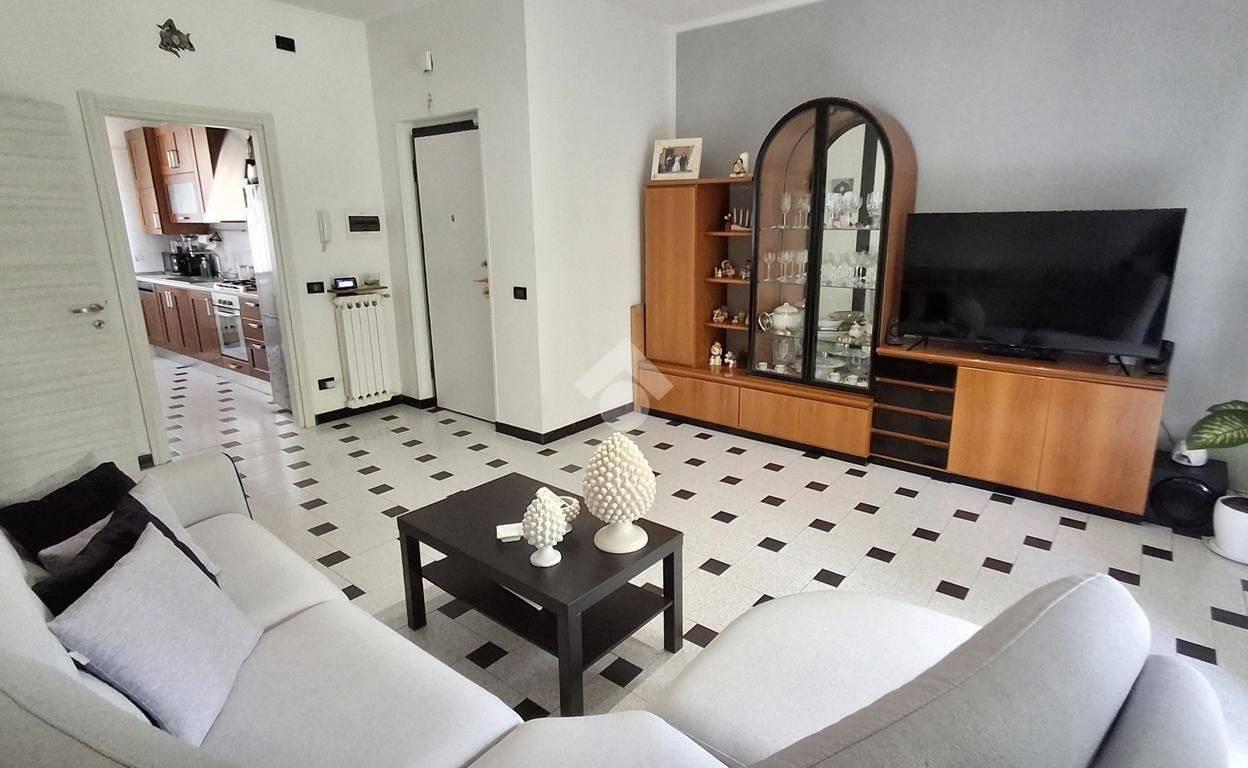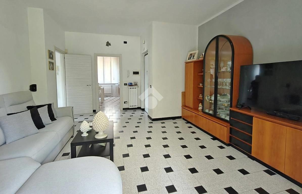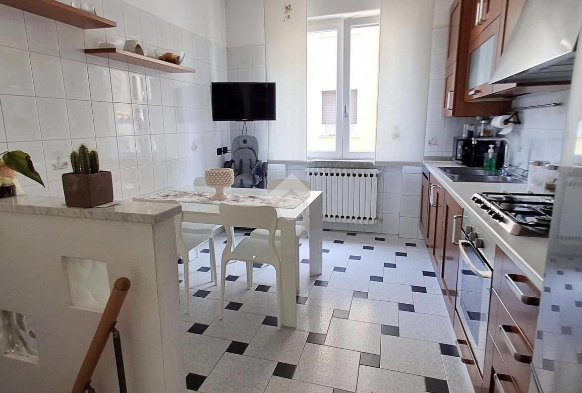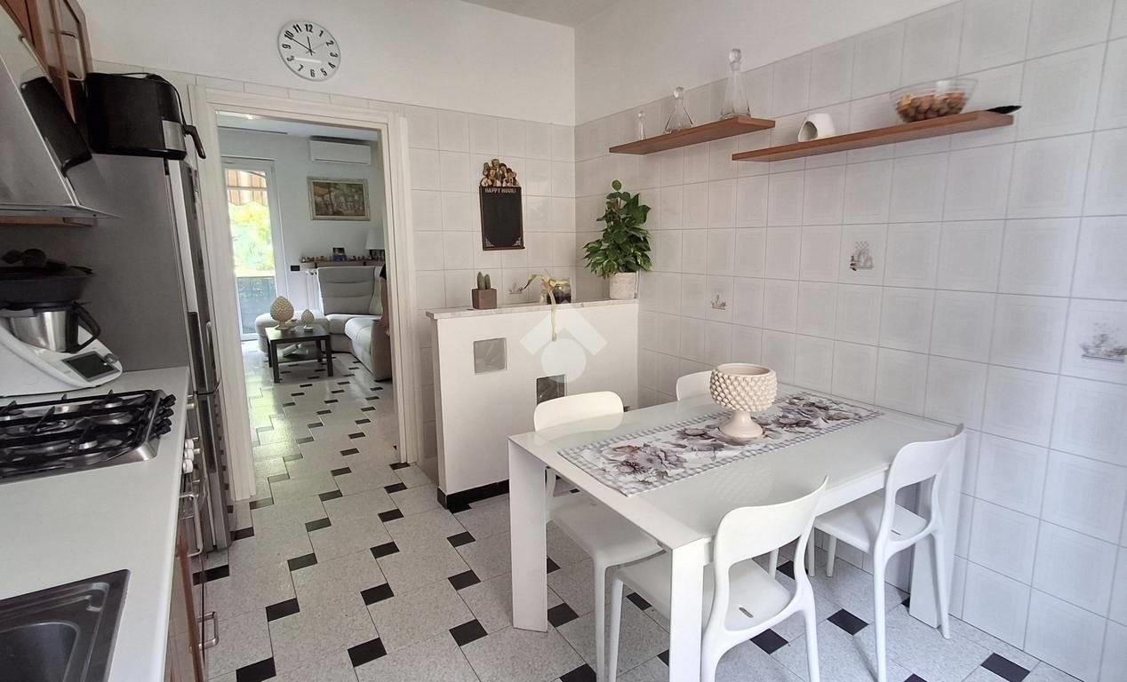 L'appartamento è composto da: ampio soggiorno con uscita su una balconata, cucina abitabile, 2 camere e un bagno; tramite una scala interna alla cucina, si accede alla taverna composta da un locale unico e un bagno finestrato adibito anche a lavanderia. Alla taverna si può accedere anche dalla scala comune esterna.