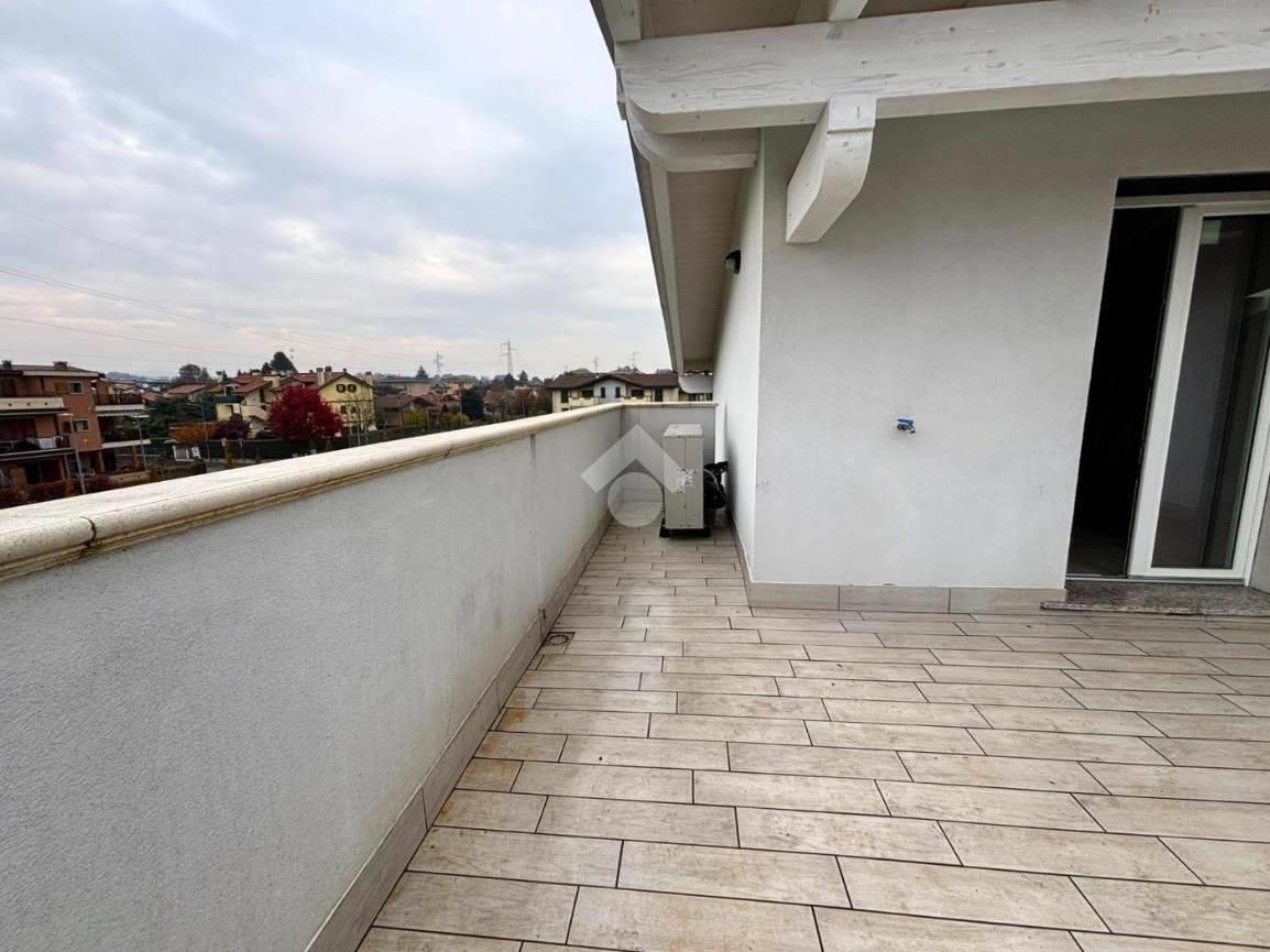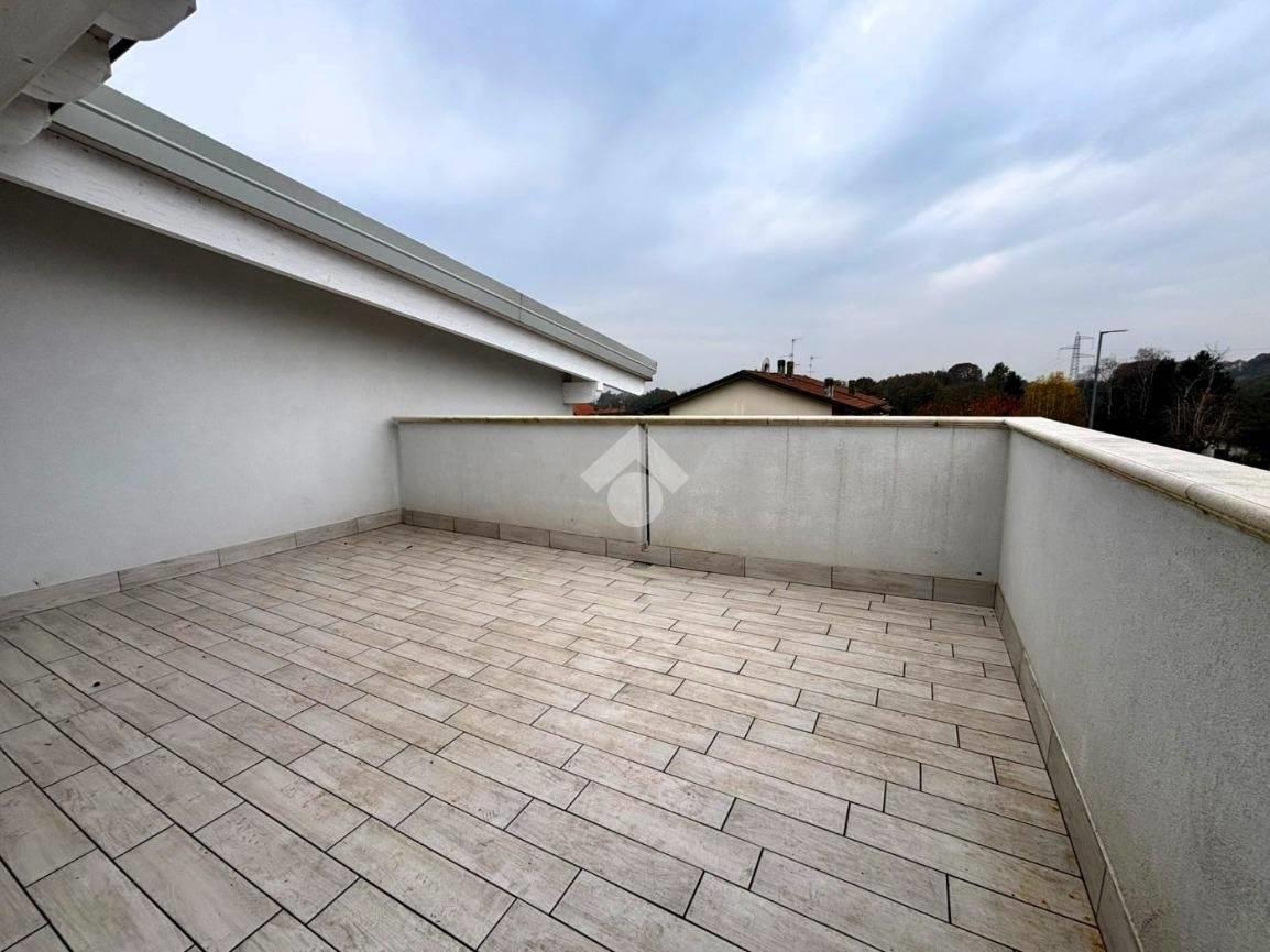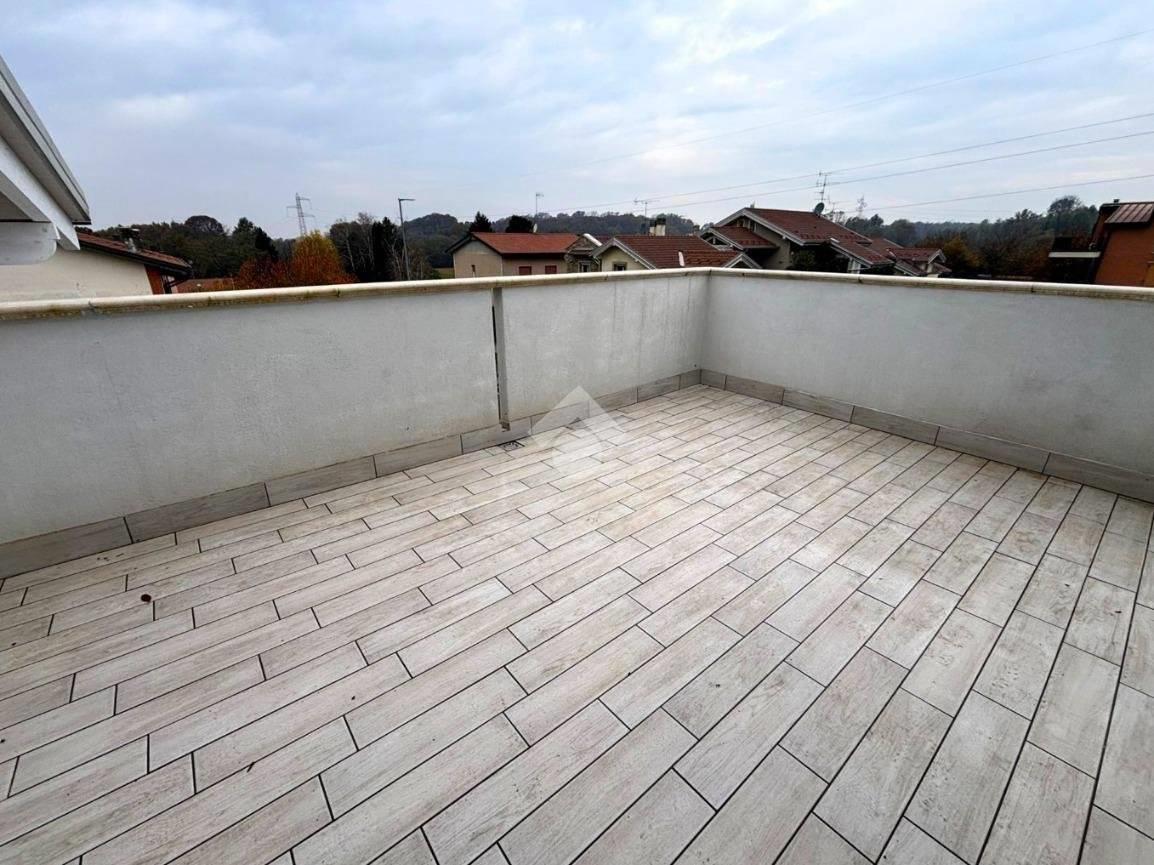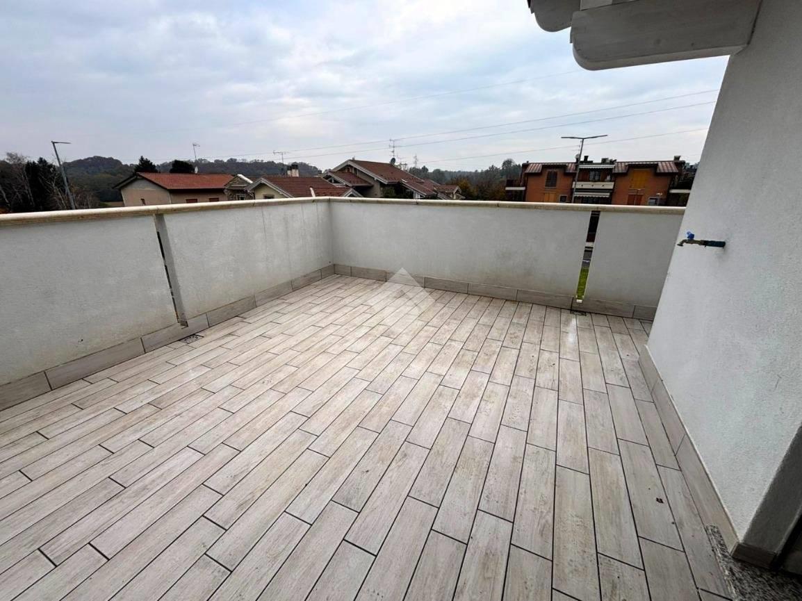 Ingresso direttamente nella zona giorno, soggiorno molto luminoso con cucina a vista e doppia porta finestra con accesso al terrazzo. Zona notte con disimpegno che ci conduce nel bagno finestrato con doccia, camera con balcone Attraverso una comoda scala saliamo nell’ampia mansarda open space con un ampio terrazzo e servizi. Le dotazioni tecnologiche consentono di avere bassissime spese condominiali. Ogni singolo appartamento è dotato riscaldamento a pavimento, contabilizzatore di calore e consumi acqua oltre alla gestione autonoma del riscaldamento tramite pompa di calore, tapparelle motorizzate, predisposizione aria condizionata e impianto antifurto. Possibilità box singolo o doppio in larghezza o lunghezza da quantificare a parte.