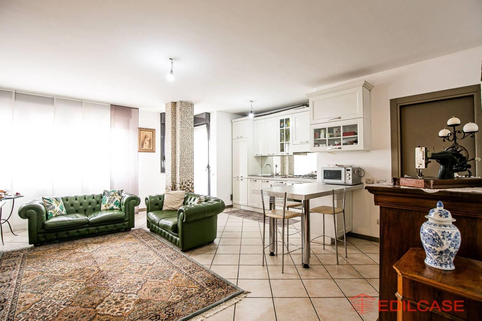 L’appartamento si apre su un soggiorno con cucina a vista, un ambiente unico e spazioso. Qui la zona relax e l’angolo cottura convivono in perfetta armonia, regalando uno spazio moderno e conviviale, ideale sia per le serate in famiglia che per ospitare amici. L’ampia metratura e la luminosità rendono questo locale il vero cuore pulsante della casa.