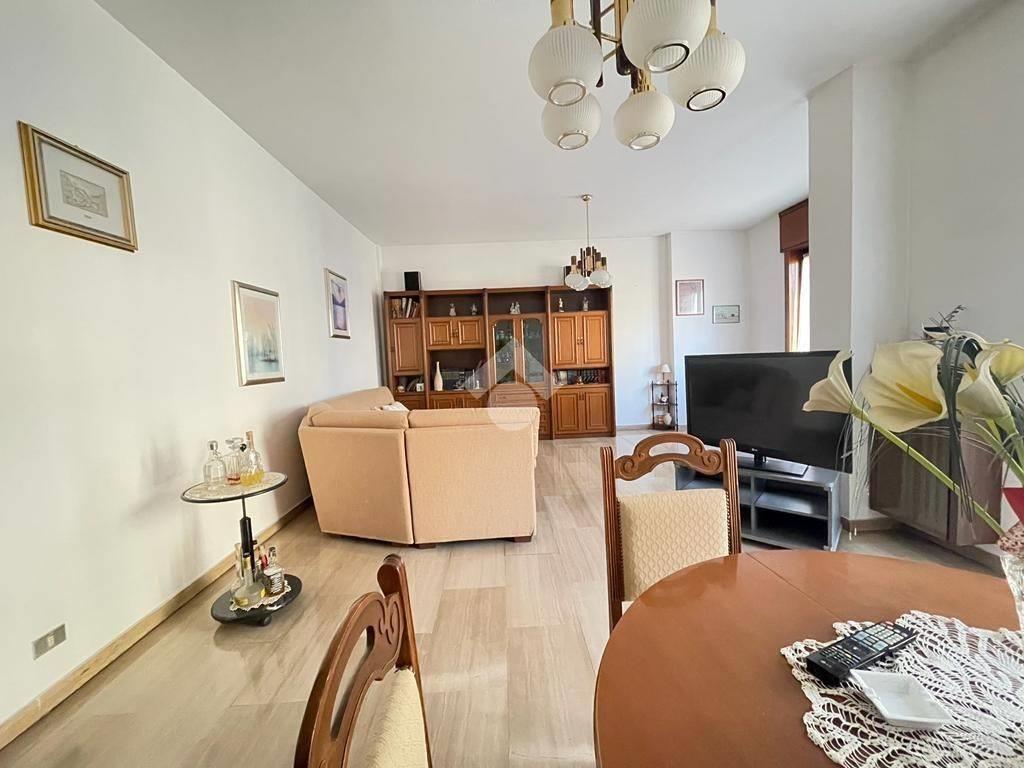 L'immobile è composto da: ingresso, soggiorno (45mq - possibilità di creare terza cameretta) con balcone,cucina abitabile con balcone, due ampie camere matrimoniali con aria condizionata e servizio finestrato.