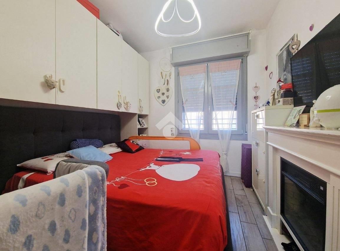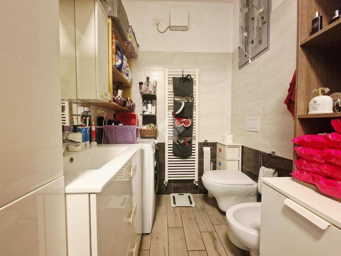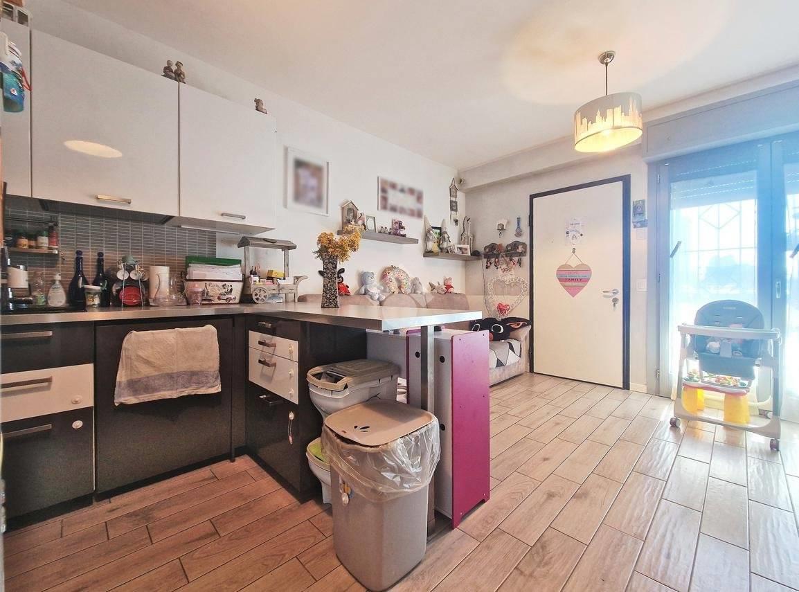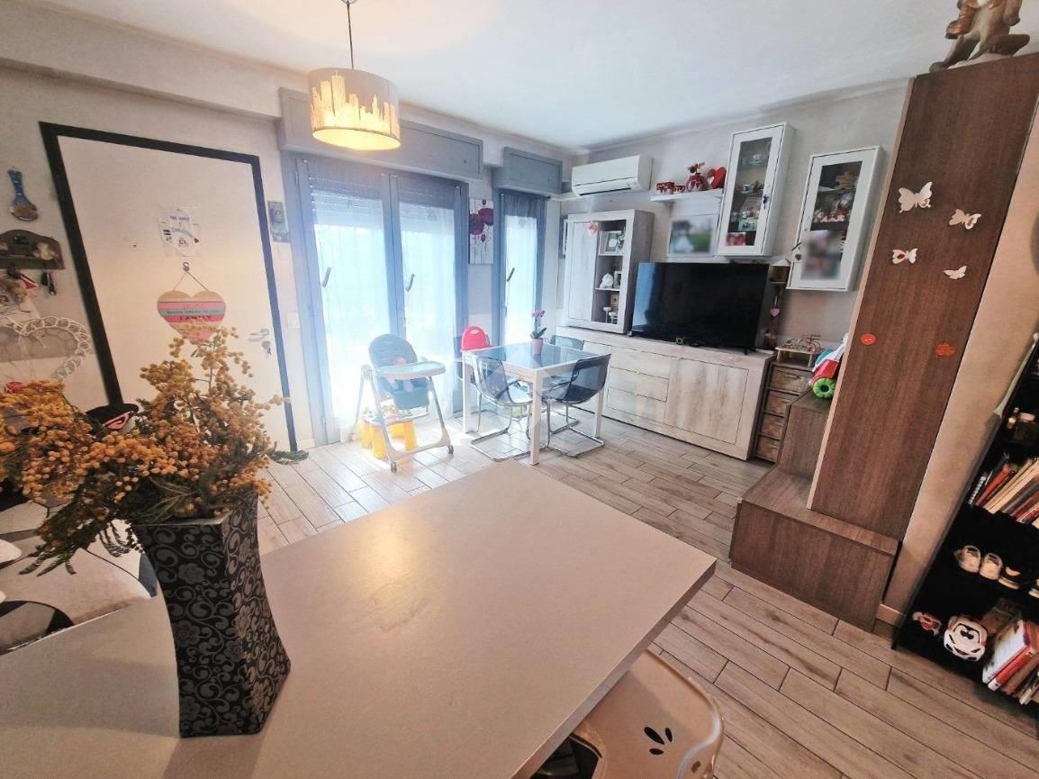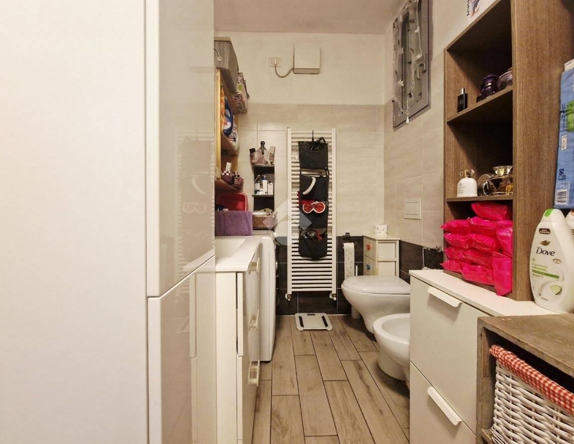 L'ingresso è sulla zona giorno con cucina a vista mentre il disimpegno conduce al bagno finestrato e alle due camere da letto.