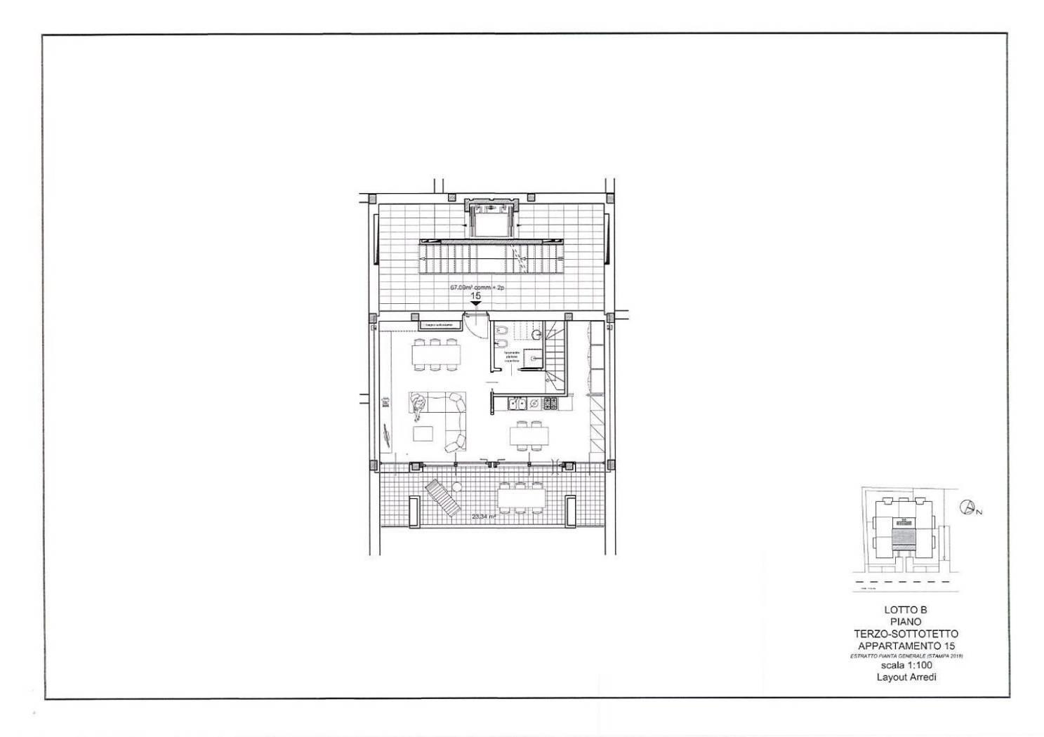 Al suo interno vanta ambienti spaziosi e luminosi e si compone di ampia zona giorno con cucina, l'ambiente affaccia su un comodo terrazzo di 23 mq, due camere da letto accessoriate di balcone e due bagni.
